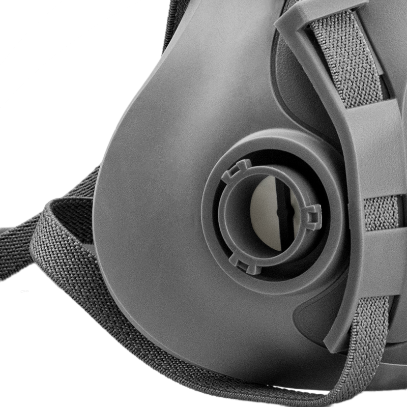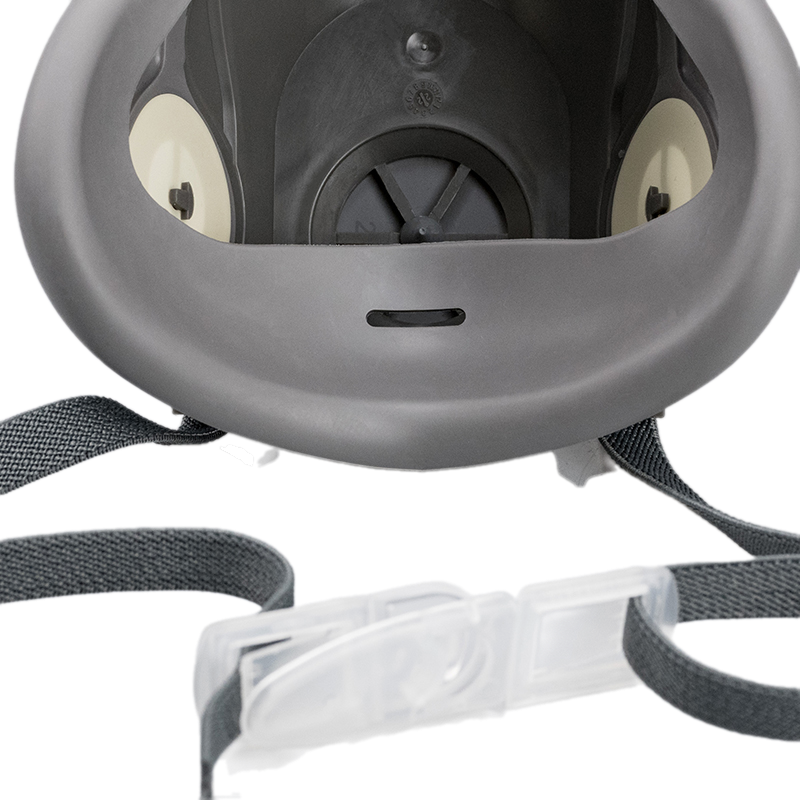 - Лицевая часть полумаски изготовлена из термопластичного эластомера, который обеспечивает большой комфорт, не вызывает аллергии и подходит для различных форм лица. Полумаска имеет малый вес и длительный срок службы