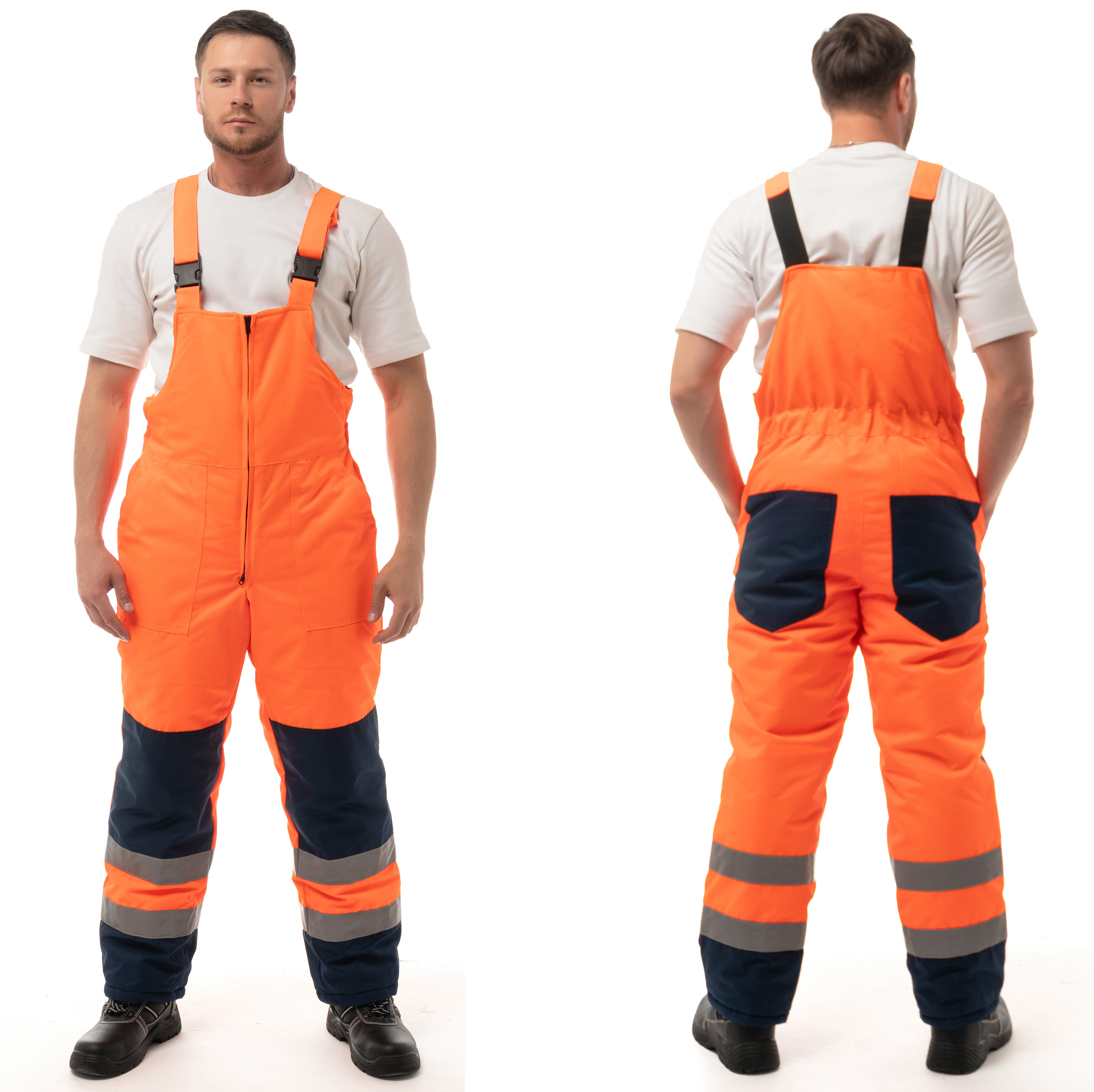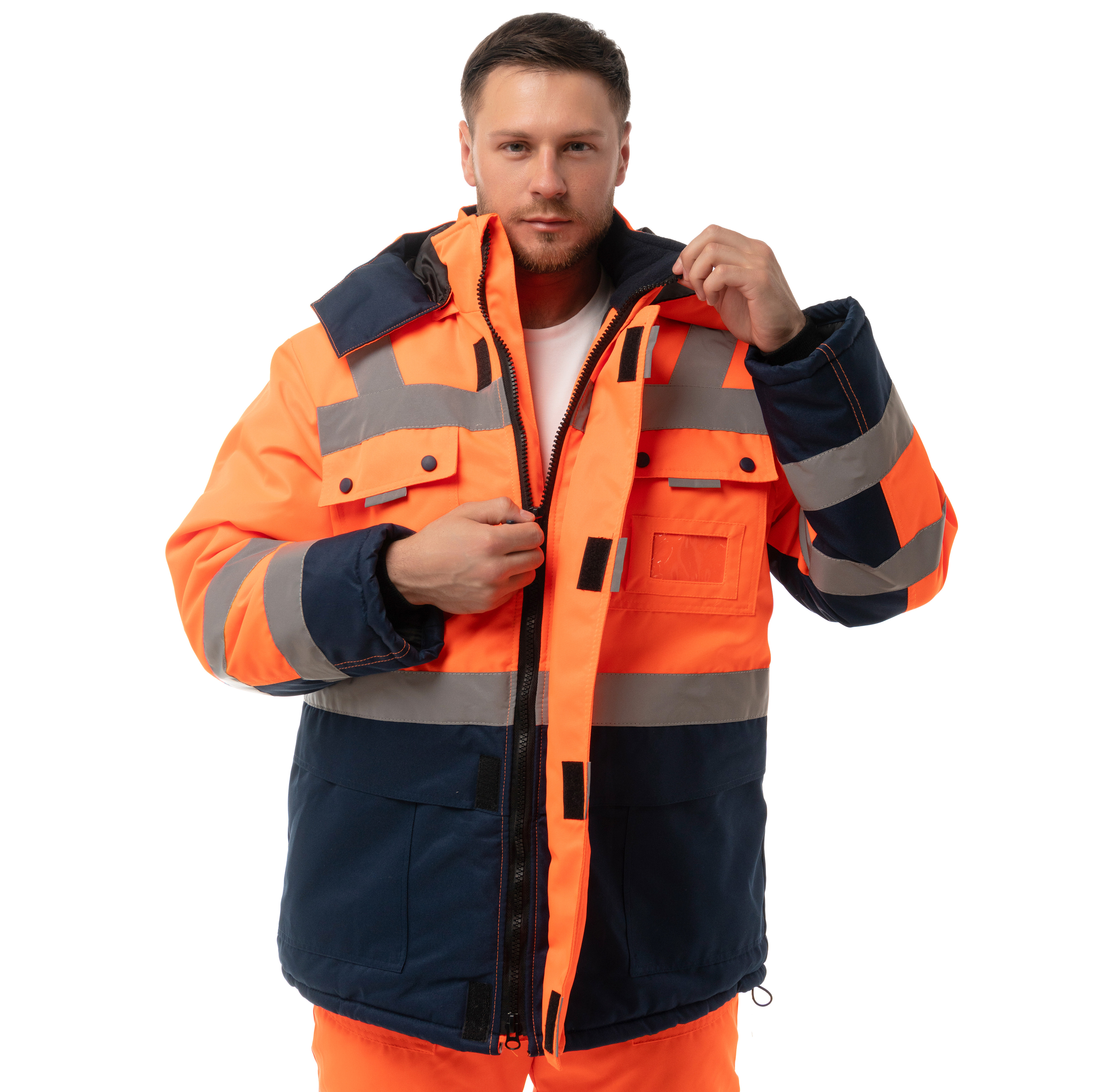 Костюм утепленный "НОРДИК" изготовлен в соответствии с ГОСТ и включает в себя два предмета: куртка / полукомбинезон. Центральная застежка изделия – молния с ветрозащитной планкой на липучку. На модели расположены накладные карманы с клапанами на кнопках, карман для бейджа, нижние накладные карманы и внутренний карман на подкладке. Для сохранения тепла на куртке предусмотрена ветрозащитная юбка на подкладке и утяжка по низу. Воротник-стойка имеет флисовую подкладку для дополнительного тепла. Костюм оснащен съемным капюшоном, который можно регулировать по объему лицевой части и использовать с каской. Трикотажные манжеты по низу рукавов регулируют посадку. Накладные карманы на передних половинках п/к обеспечивают удобный доступ к необходимым вещам. Для лучшего прилегания на изделии присутствует ткацкая резинка по линии талии. В области колен на задних половинках усилительные накладки. Для безопасной работы сотрудника в местах с плохим освещением на костюме «НОРДИК» предусмотрена световозвращающая лента в 2 ряда.