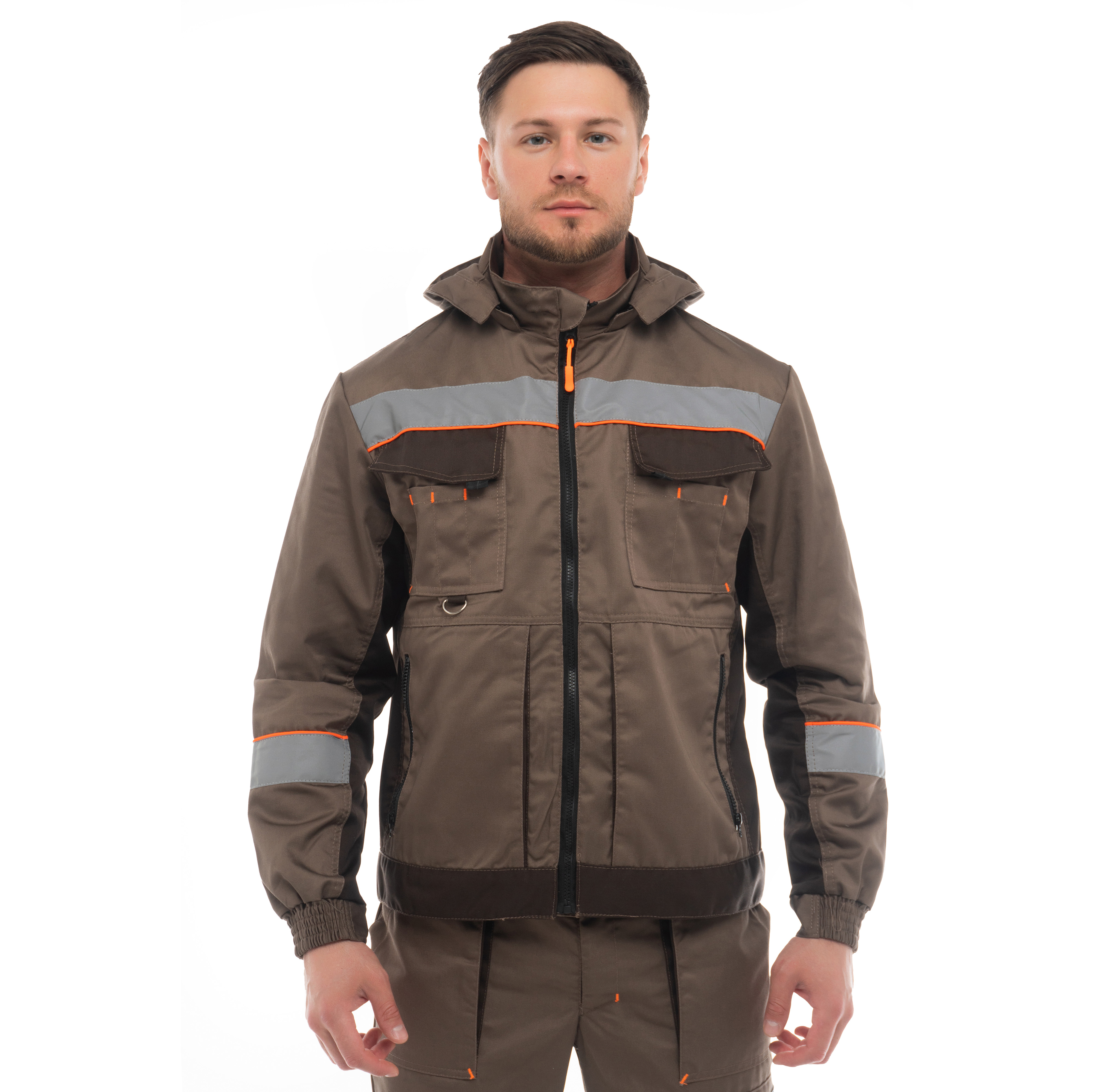 • в костюме используются светоотражающая лента 50мм и кант готовый оранжевого цвета