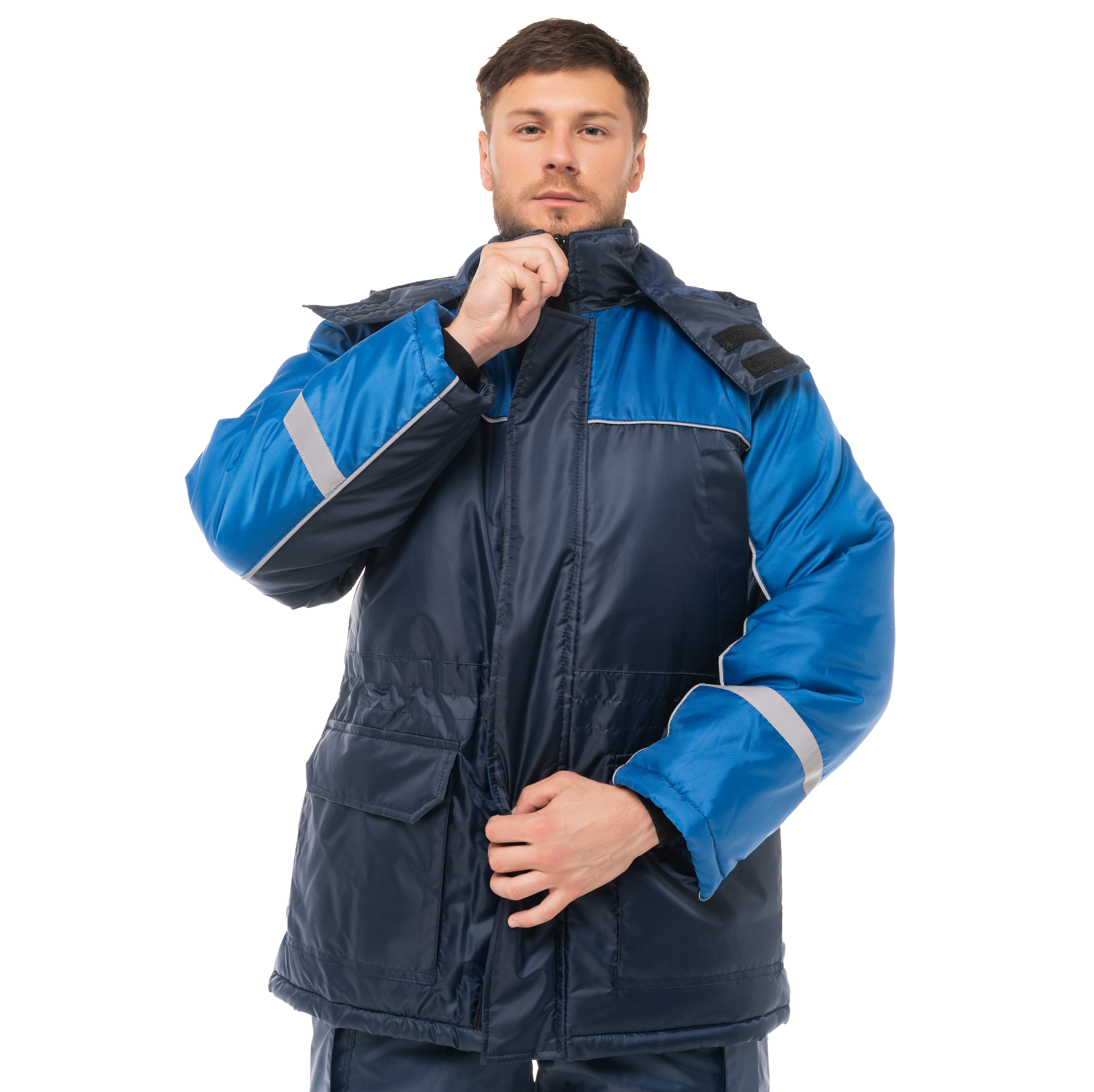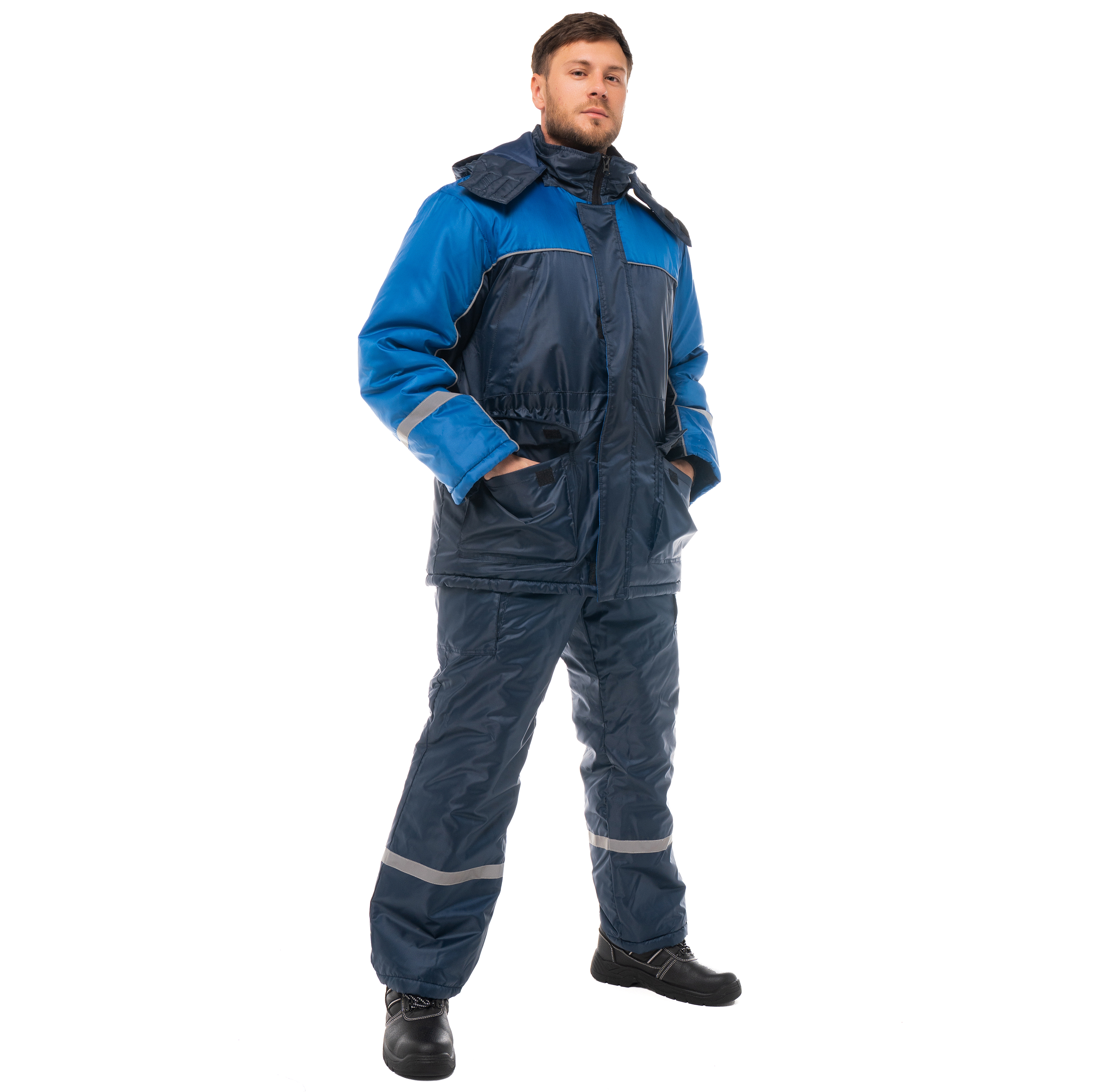 Костюм утепленный "БАЛТИКА" изготовлен в соответствии с ГОСТ и включает в себя 2 предмета: куртка / полукомбинезон. Куртка удлиненная с ветрозащитной планкой на ленте-контакт. В верхних карманах наклонный вход, а нижние объемные карманы оснащены клапанами на ленте-контакт для удобного хранения вещей. Воротник-стойка имеет флисовую подкладку для дополнительного комфорта. Капюшон утепленный, съемный.