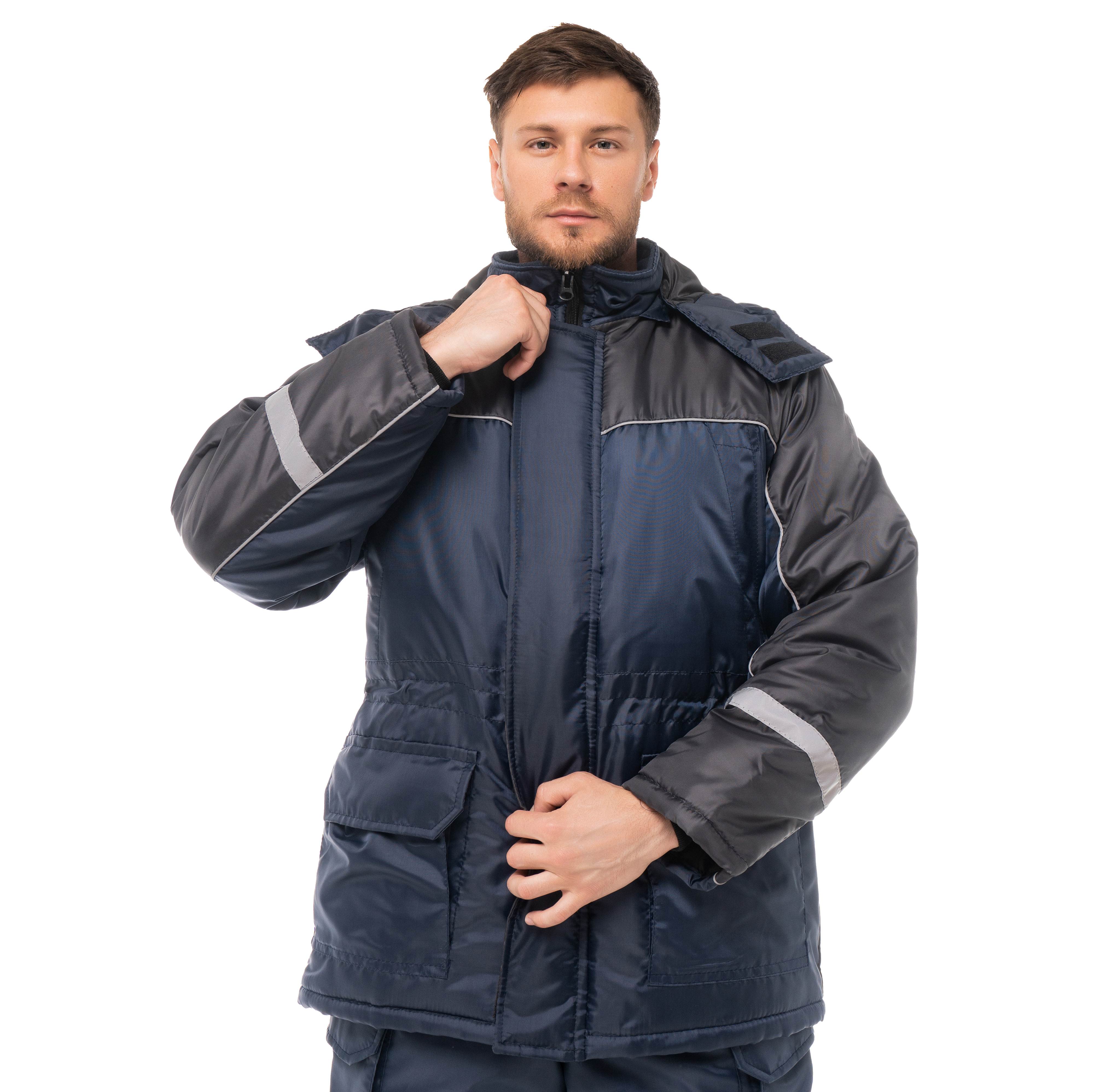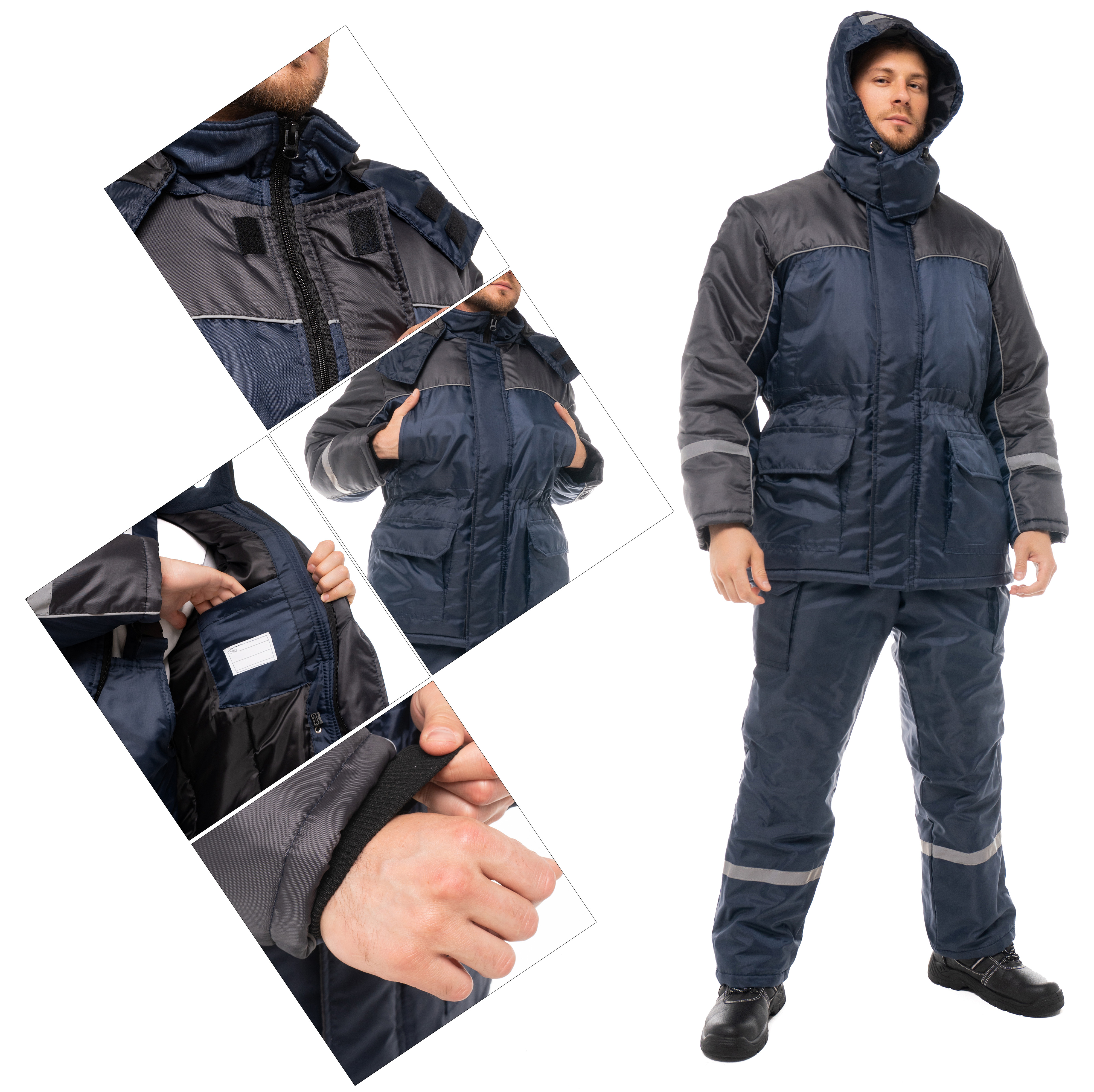 Костюм утепленный "БАЛТИКА" изготовлен в соответствии с ГОСТ и включает в себя 2 предмета: куртка / полукомбинезон. Куртка удлиненная с ветрозащитной планкой на ленте-контакт. В верхних карманах наклонный вход, а нижние объемные карманы оснащены клапанами на ленте-контакт для удобного хранения вещей. Воротник-стойка имеет флисовую подкладку для дополнительного комфорта. Капюшон утепленный, съемный. Центральная застежка утепленного полукомбинезона - молния. Боковые объемные карманы с клапанами на ленте-контакт. На спине вдоль линии талии есть эластичная резинка для регулировки посадки. Для безопасной работы сотрудника в местах с плохим освещением на костюме «Антей» предусмотрена световозвращающий кант и полоса шириной 25 мм.