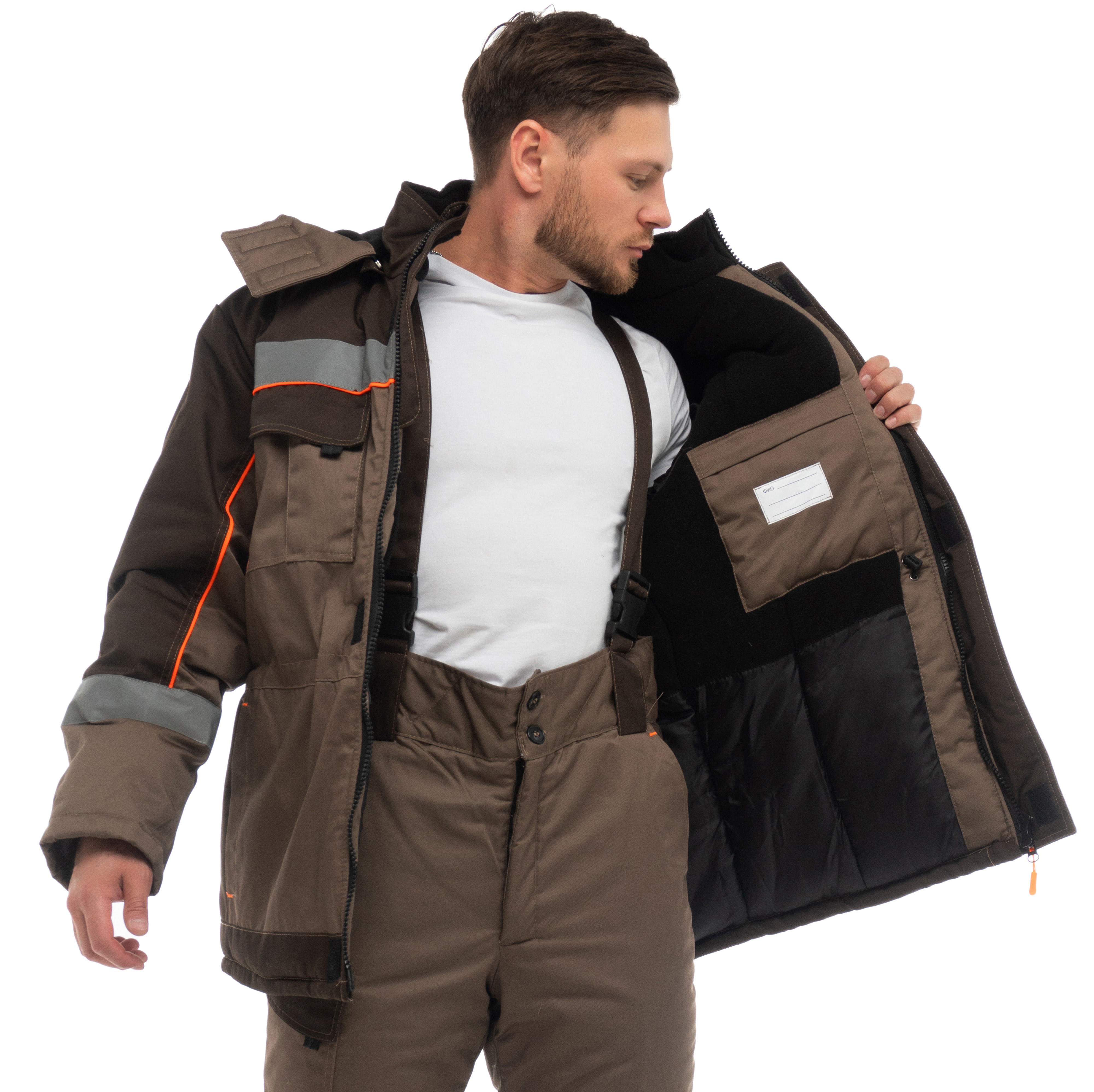 В костюме используется световозвращающия лента 50мм