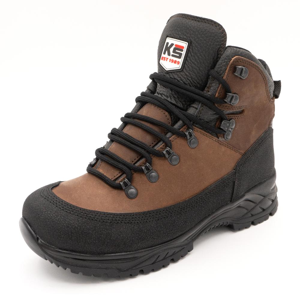 Верх ботинок "KS-SAFETY" 160 в черном цвете выполнен из натуральной кожи (нубука). Подкладка модели представляет собой текстильный ламинированный четырехслойный материал с водонепроницаемой мембраной. Трехслойная стелька из текстиля обладает антибактериальными свойствами.