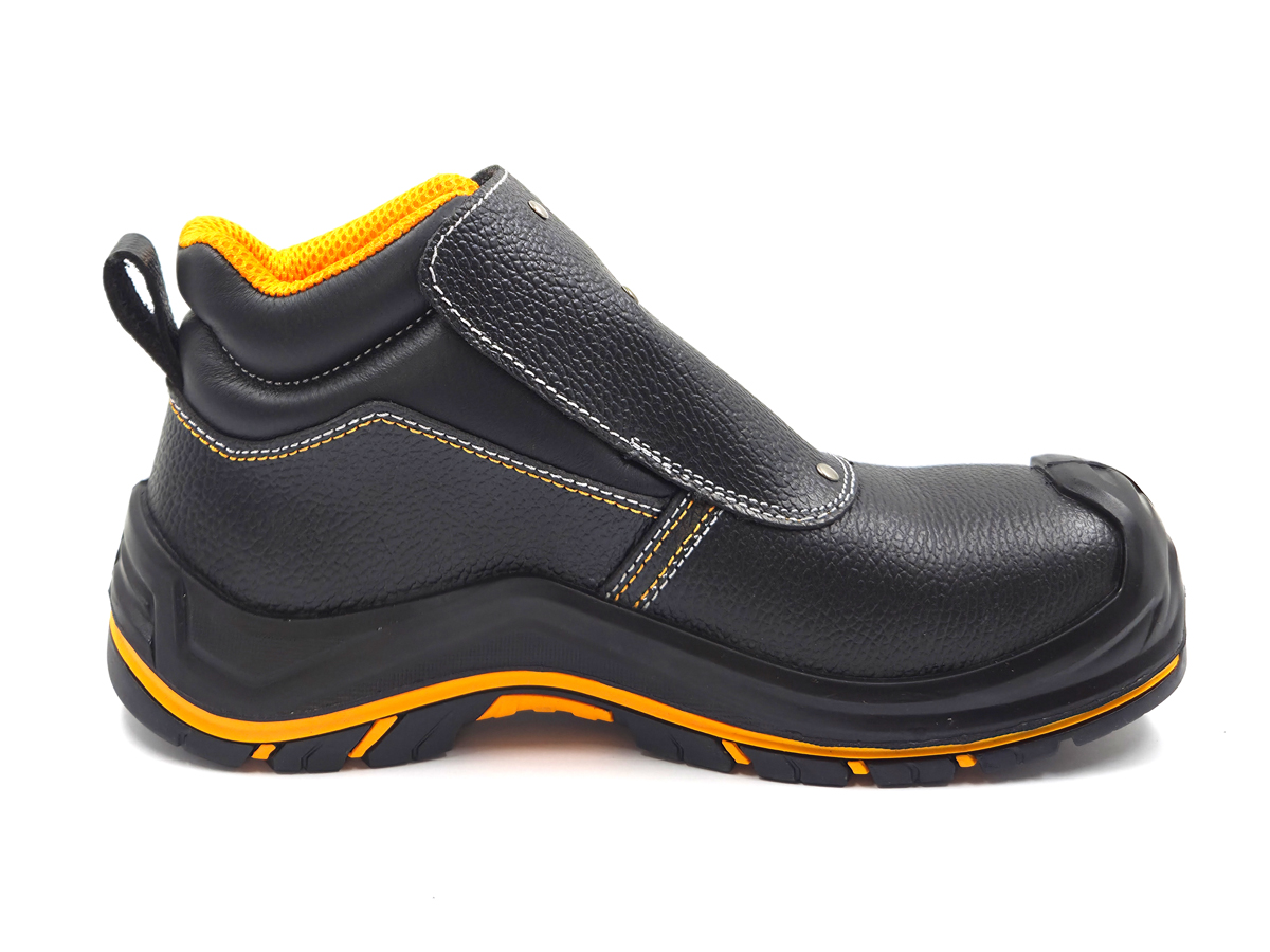 Ботинки "Сварщика" отлично подойдут для использования при сварочных работах. Обувь изготовлена методом прямого литья. Защитный кожаный клапан защищает шнуровку и фиксируется ремешком с пряжкой. Носок из поликарбоната обеспечивает защиту от ударов в носочной части 200 Дж и проколов. Верх обуви выполнен из термостойкой водоотталкивающей кожи толщиной 1,8 - 2 мм, со специальным покрытием, которое защищает от контактов с агрессивной средой: нефти, растворов кислот и щелочной концентрации до 20%, общих производственных загрязнений. Подошва двухслойная (полиуретан и нитрильная резина), устойчива к контакту с нагретой поверхностью до 300 градусов Цельсия, с улучшенным сопротивлением к скольжению и деформациям. Металлическая антипрокольная стелька обезопасит стопу ноги от порезов и проколов.