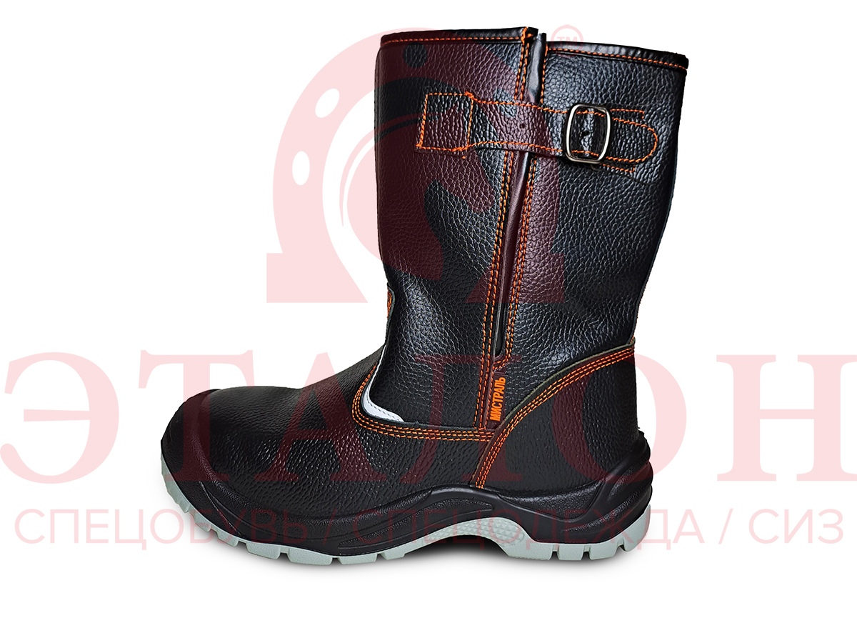 Сапоги серии «Мистраль» изготовлены методом прямого литья. Изделие обеспечивает высокую защиту от механических воздействий (от ударов в носочной части 200 Дж). Верх обуви "Мистраль" выполнен из термоустойчивой водоотталкивающей кожи толщиной 1,8 - 2,0. Подошва - двухслойная, с ходовым слоем из износостойкого термополиуретана, с улучшенным сопротивлением к скольжению, стойкостью к деформациям и истиранию. Сапоги «МИСТРАЛЬ» подойдут для использования в строительстве, ЖКХ, нефтегазовой, горнодобывающей, химической промышленности, агропромышленном комплексе, металлургии и многих других.