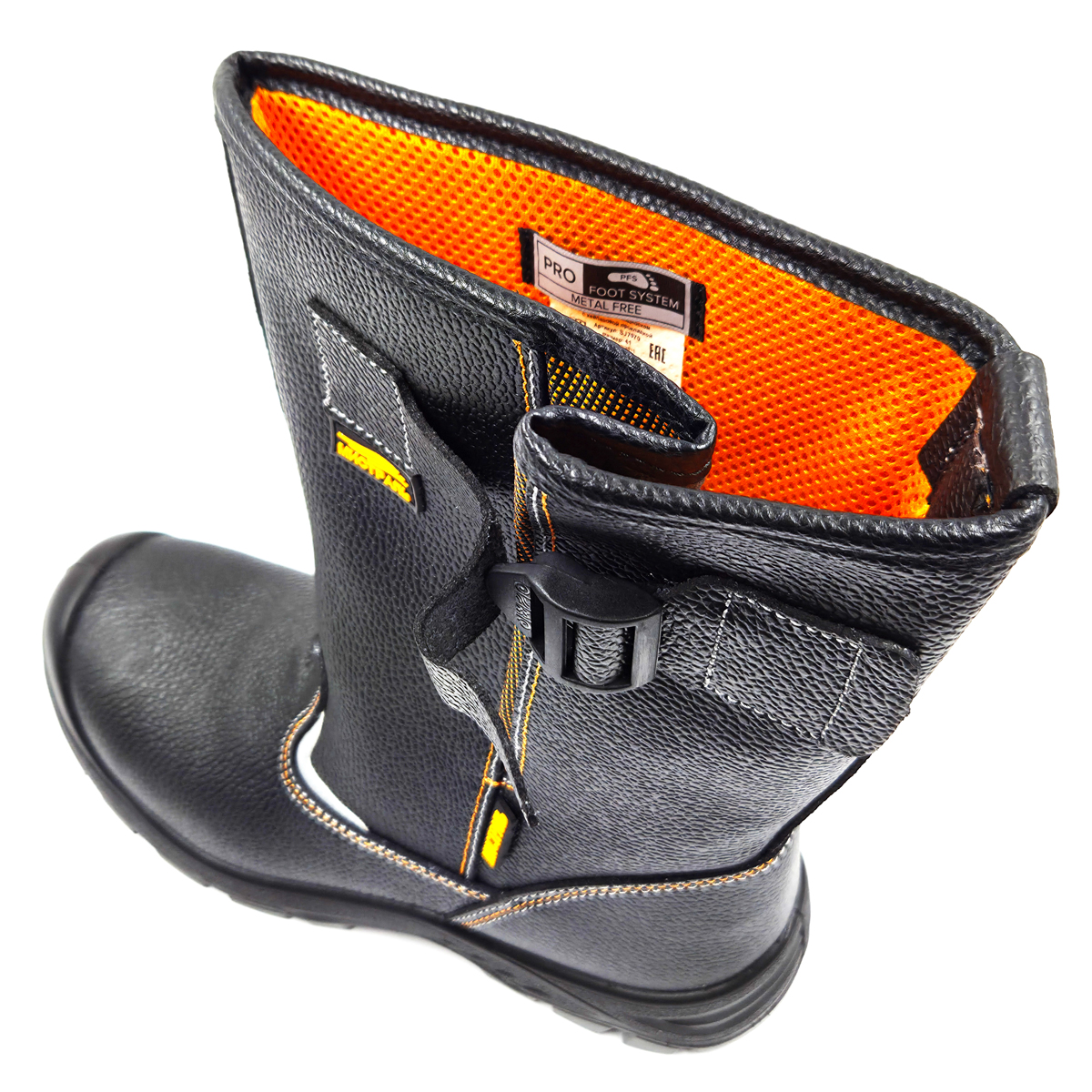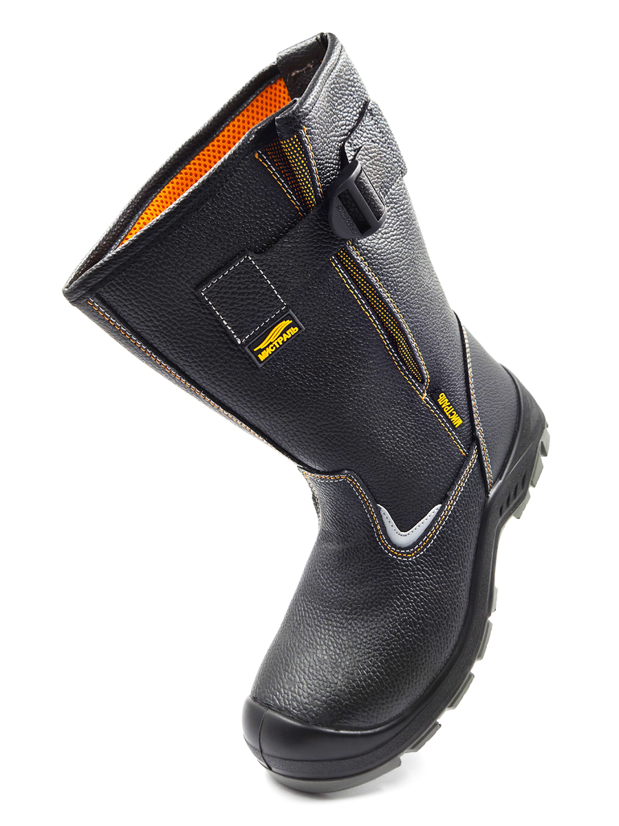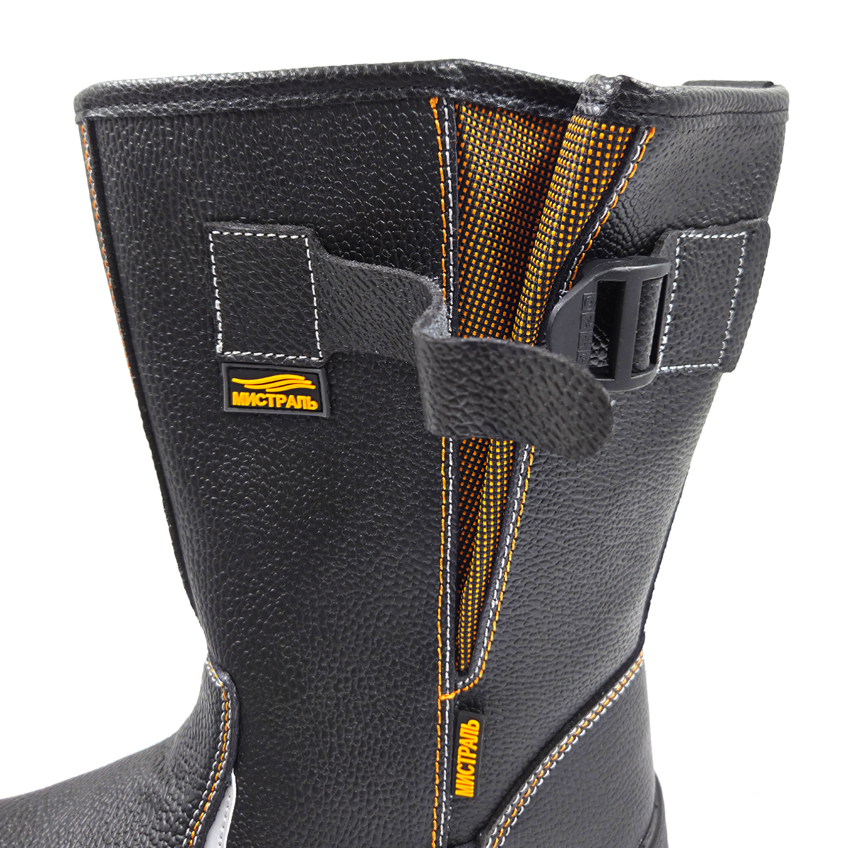 Сапоги «МИСТРАЛЬ-ULTRA» изготовлены методом литья к заготовке верха обуви. Подошва – двухслойная ПУ-ТПУ, устойчивая к воздействию нефти, нефтепродуктов, кислот и щелочей концентрации до 20%, повышенных и пониженных температур. Модель обладает улучшенным сопротивлением скольжению, стойкостью к деформациям, истиранию. Голенище выполнено из натуральной кожи. Для защиты от ударов в носочной части стопы применяется композитный подносок (Мун 200), имеющий конфигурацию, препятствующую надавливанию верхнего края на стопу и оборудованный прокладкой из полиуретана. Обувь изготавливается с проколозащитными прокладками (стельками) из металла, обеспечивающими защиту от проколов и порезов с сопротивлением сквозному проколу пакета деталей низа обуви не менее 1200 Н.