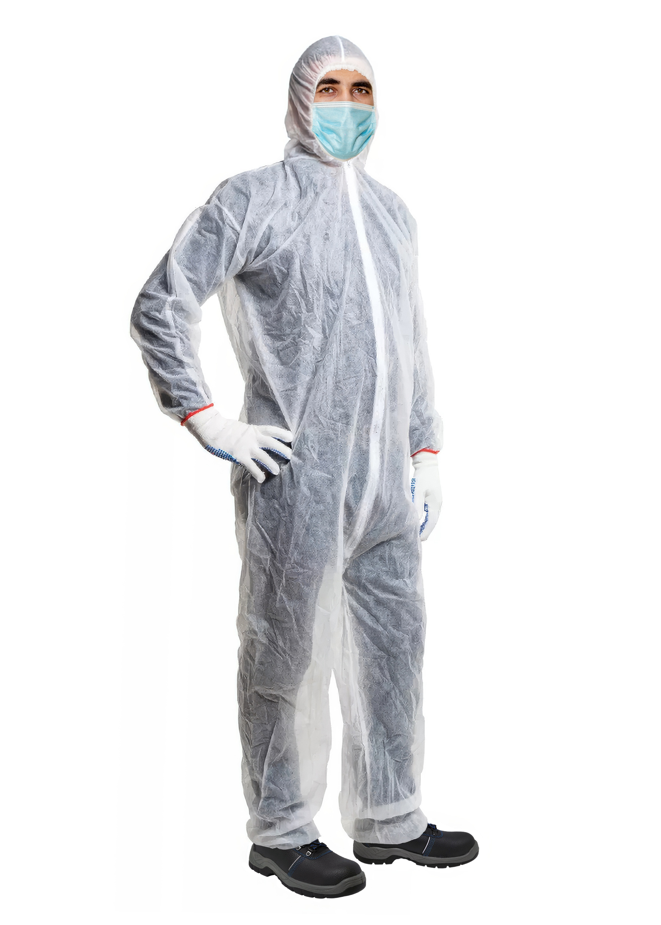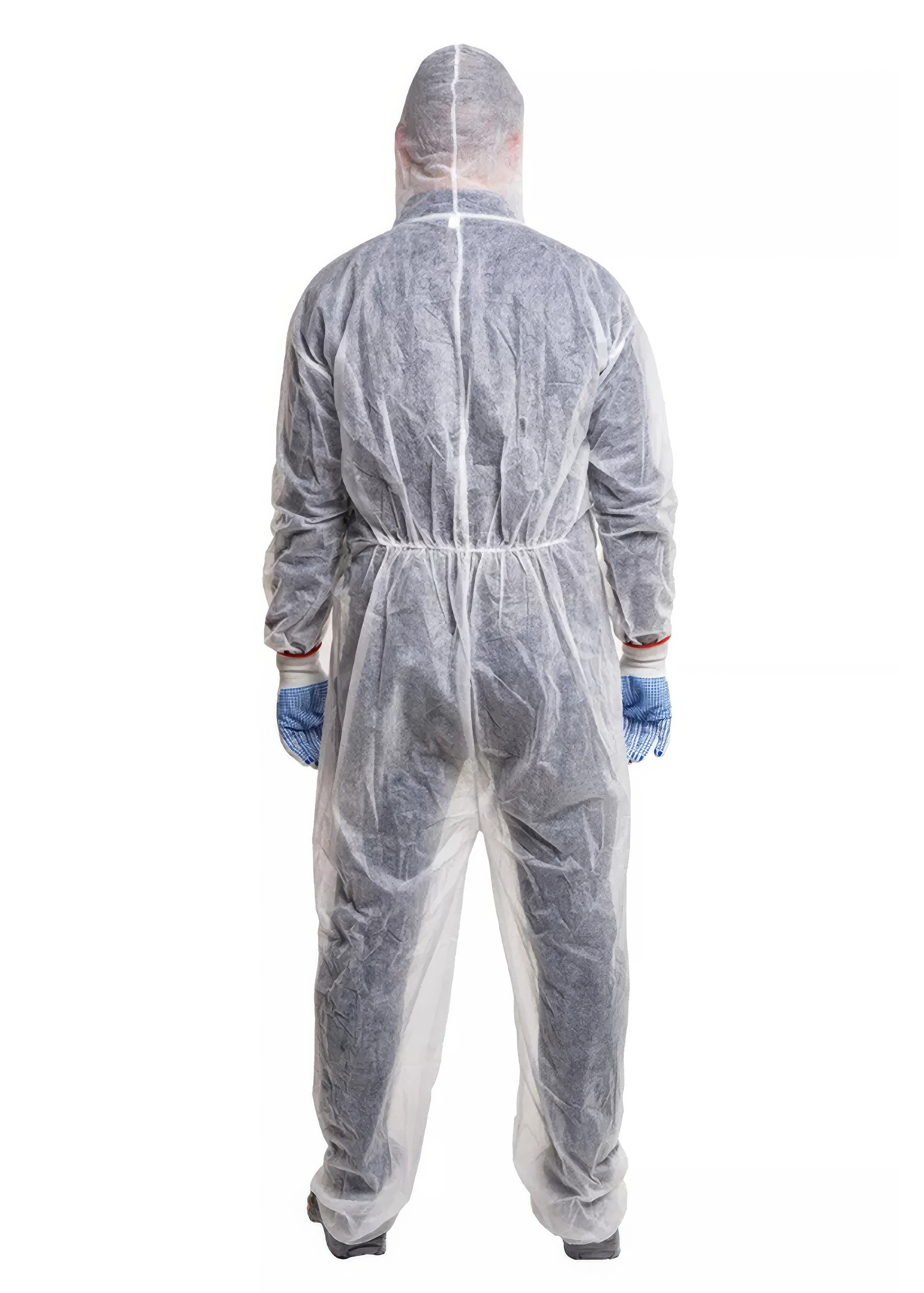 Одноразовый комбинезон из спанбонда изготовлен из 100% полипропилена плотностью 35 г/м². Материал обеспечивает хорошую воздухопроницаемость при сохранении пылезащитных свойств, что делает изделие удобным для длительного использования. Комбинезон применяется в фармацевтической и пищевой промышленности, а также подходит для малярных, ремонтно-отделочных и аварийно-спасательных работ. Используется в машиностроении, сборке электроники, сельском хозяйстве, автосервисе, химической и нефтехимической промышленности, при очистке производственных помещений и оборудования.