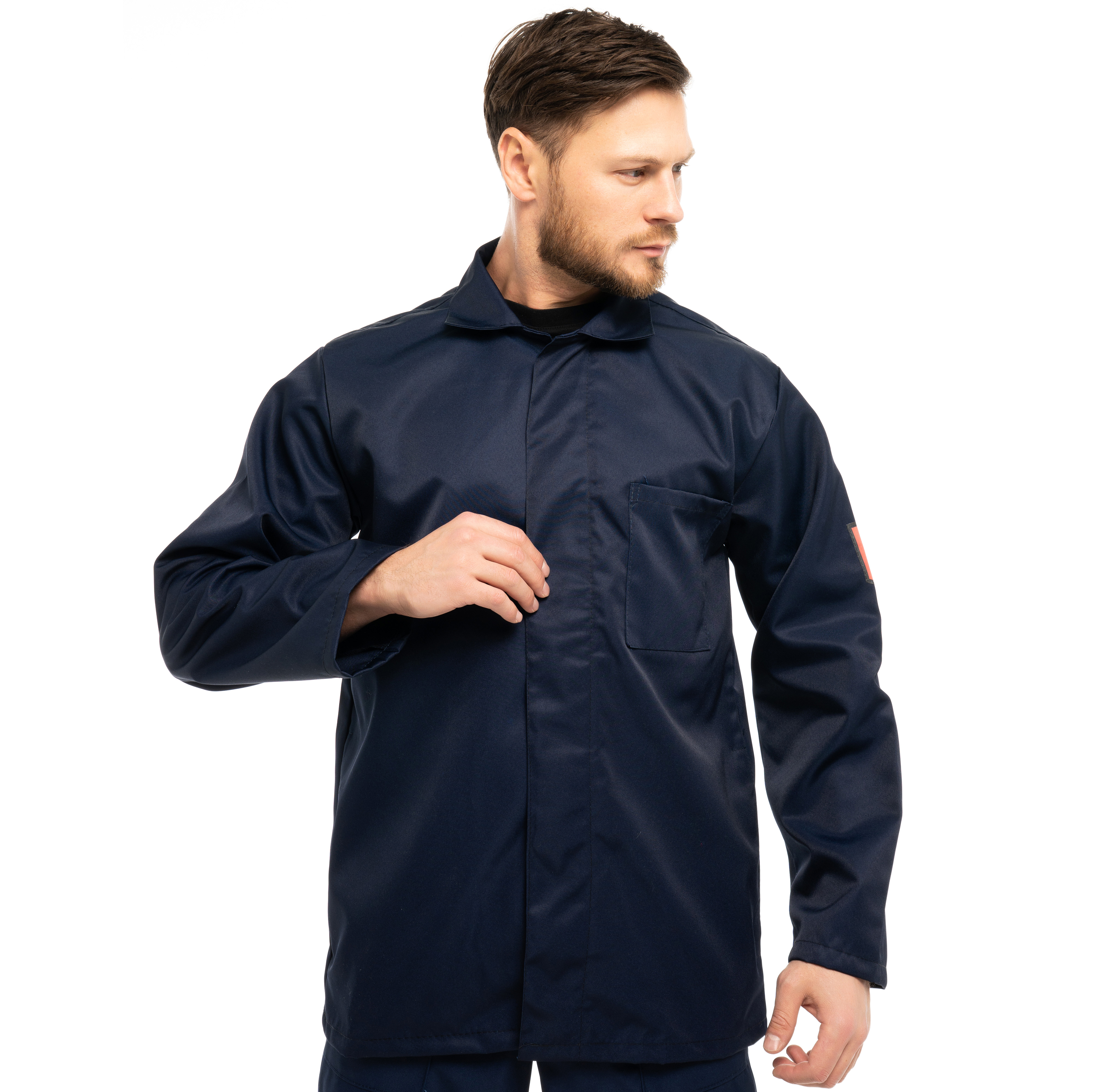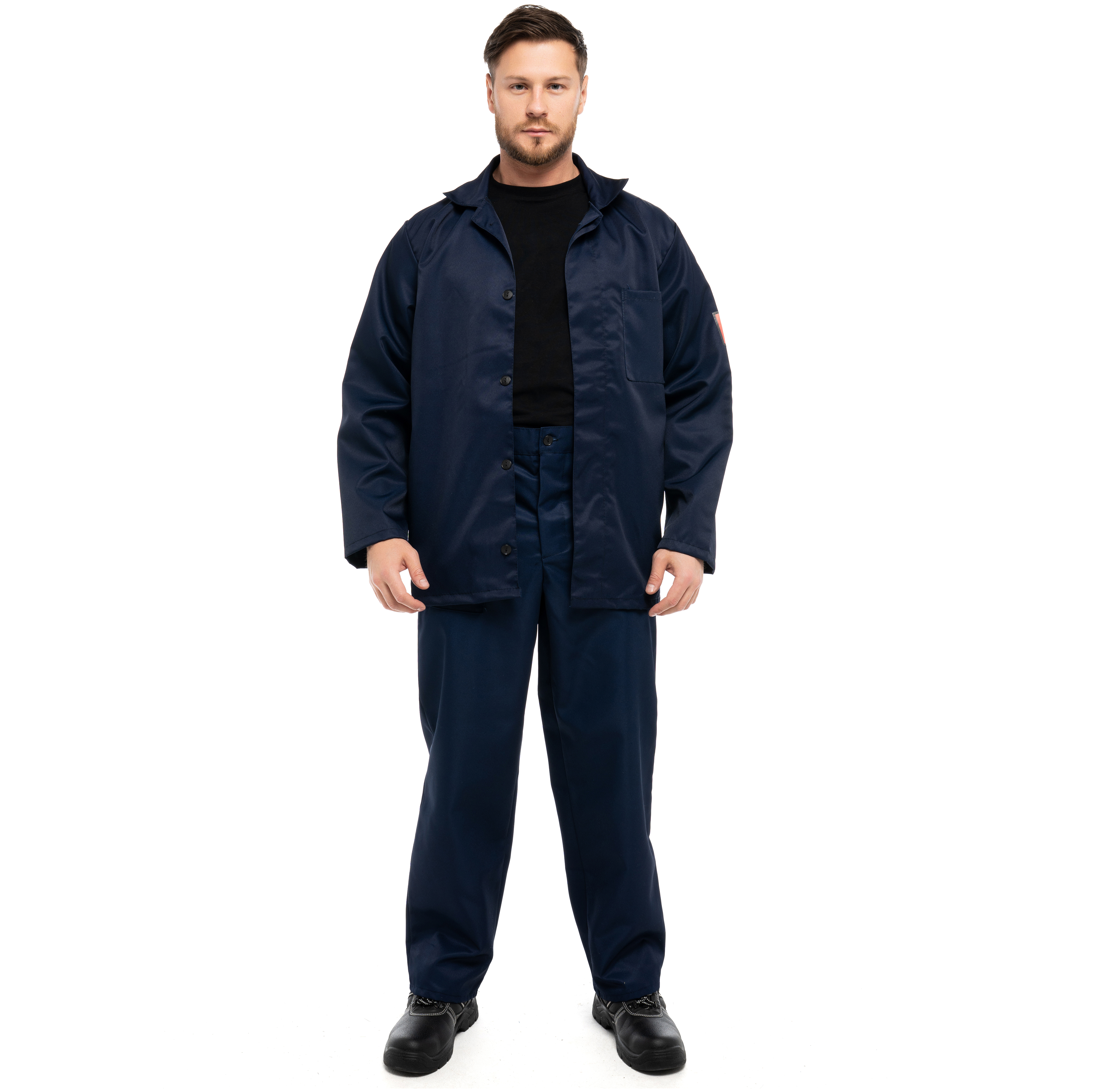 Костюм КЩС Лавсановый изготовлен в соответствии с ГОСТ и включает 2 предмета: куртка, брюки. Изделие закрывается на супатную застежку на пуговицы. На модели расположены верхний левый накладной карман, нижние карманы в рельефе, накладные карманы с косым входом. Куртка оснащена втачным воротником. Гульфик на брюках застегивается на пуговицы. На изделии вытачки на задних половинках и притачной пояс со шлевками.