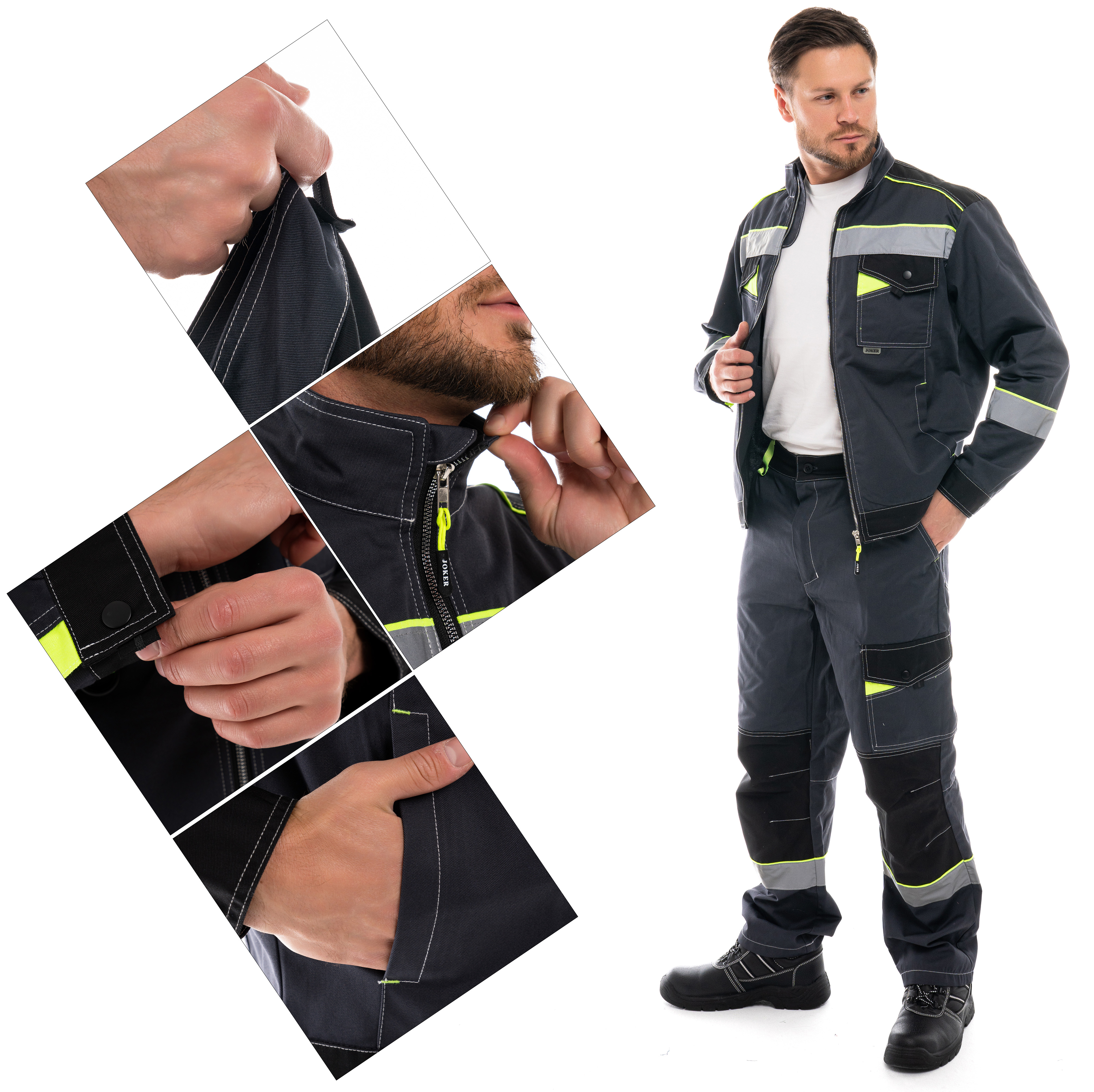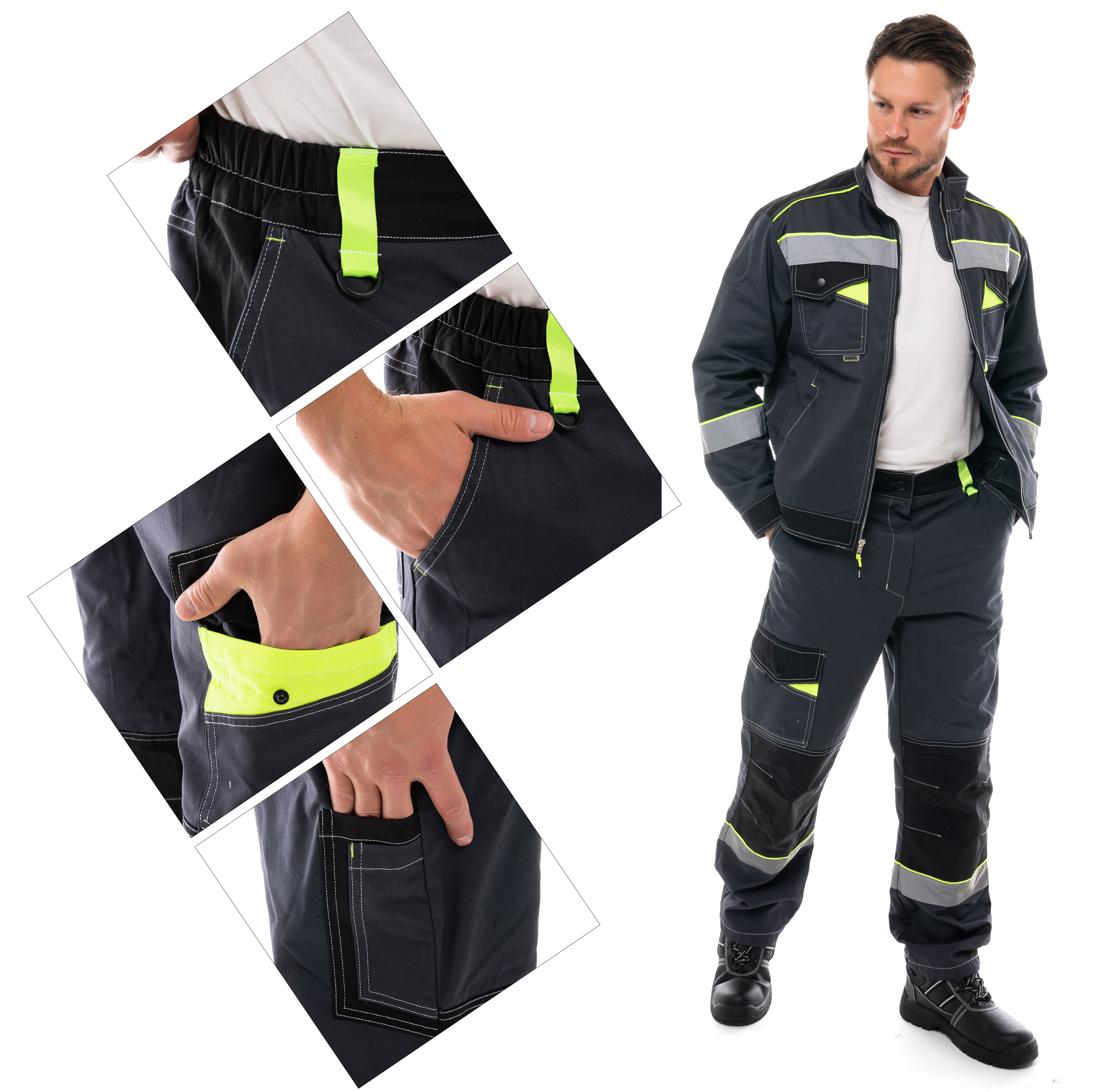 В костюме присутствует световозвращающая лента шириной 50 мм (400кд)