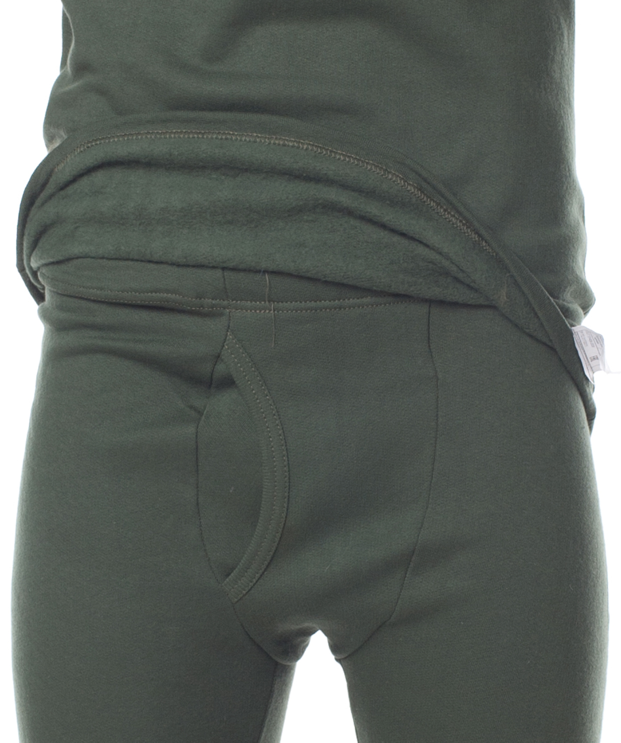 Белье нательное зимнее изготовлено в соответствии с ГОСТ и включает 2 предмета: фуфайка и кальсоны. Мужское нательное белье с начесом. Хлопчатобумажное нательное белье не вызывает аллергии, отлично сохраняет тепло. На изделии круглая горловина, на рукавах и нижних краях брюк манжеты. На кальсонах гульфик, талия держится на резинке.