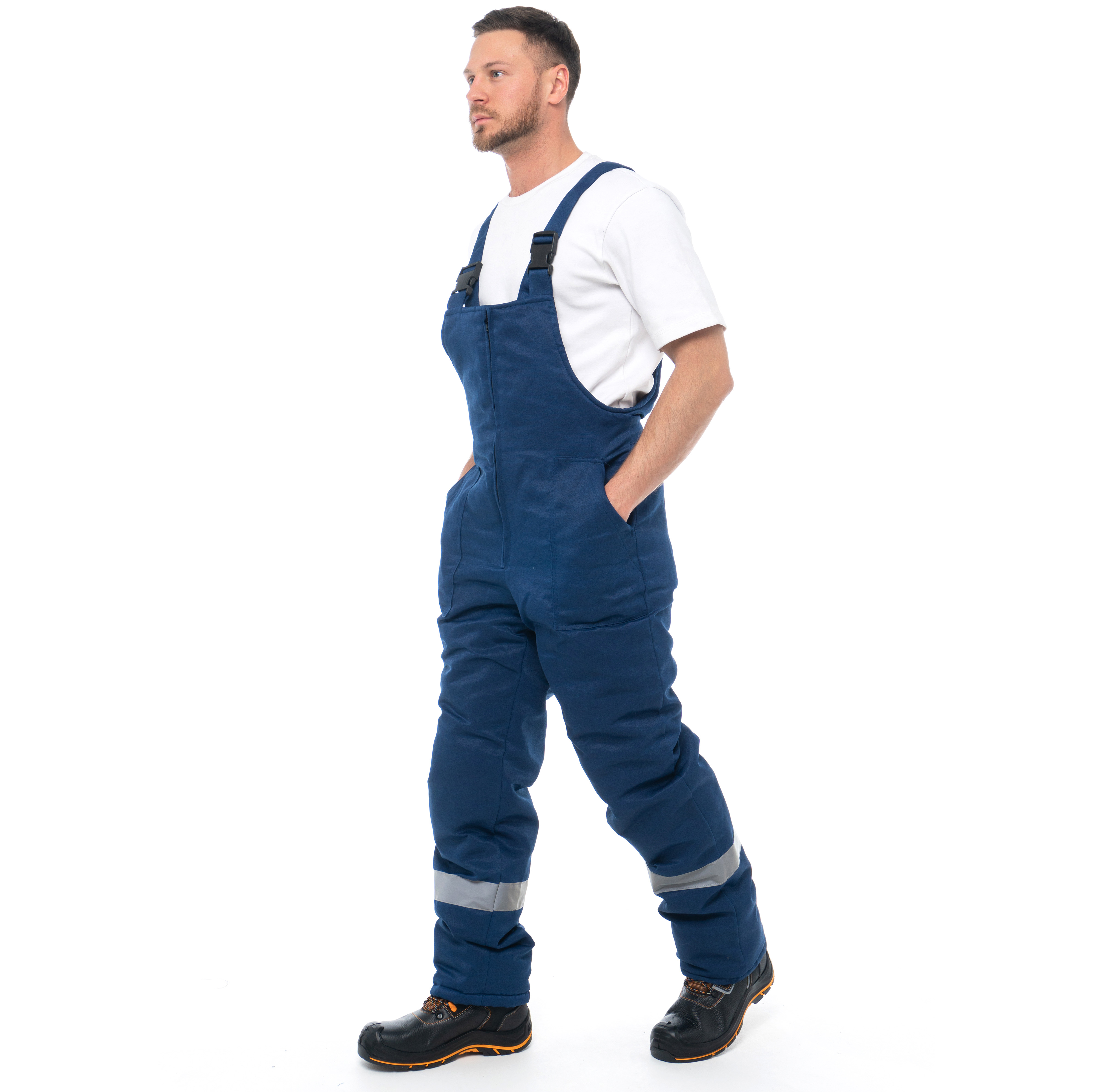 Полукомбинезон «СТАНДАРТ» с СОП (грета) изготовлен в соответствии с ГОСТ. Модель закрывается на молнию. Кулиса по талии и спинки на эластичную резинку фиксирует посадку. На изделии расположены Боковые карманы с наклонным входом. Для безопасной работы сотрудника в местах с плохим освещением на полукомбинезоне «СТАНДАРТ» с СОП (грета) предусмотрена светоотражающая лента шириной 50 мм.