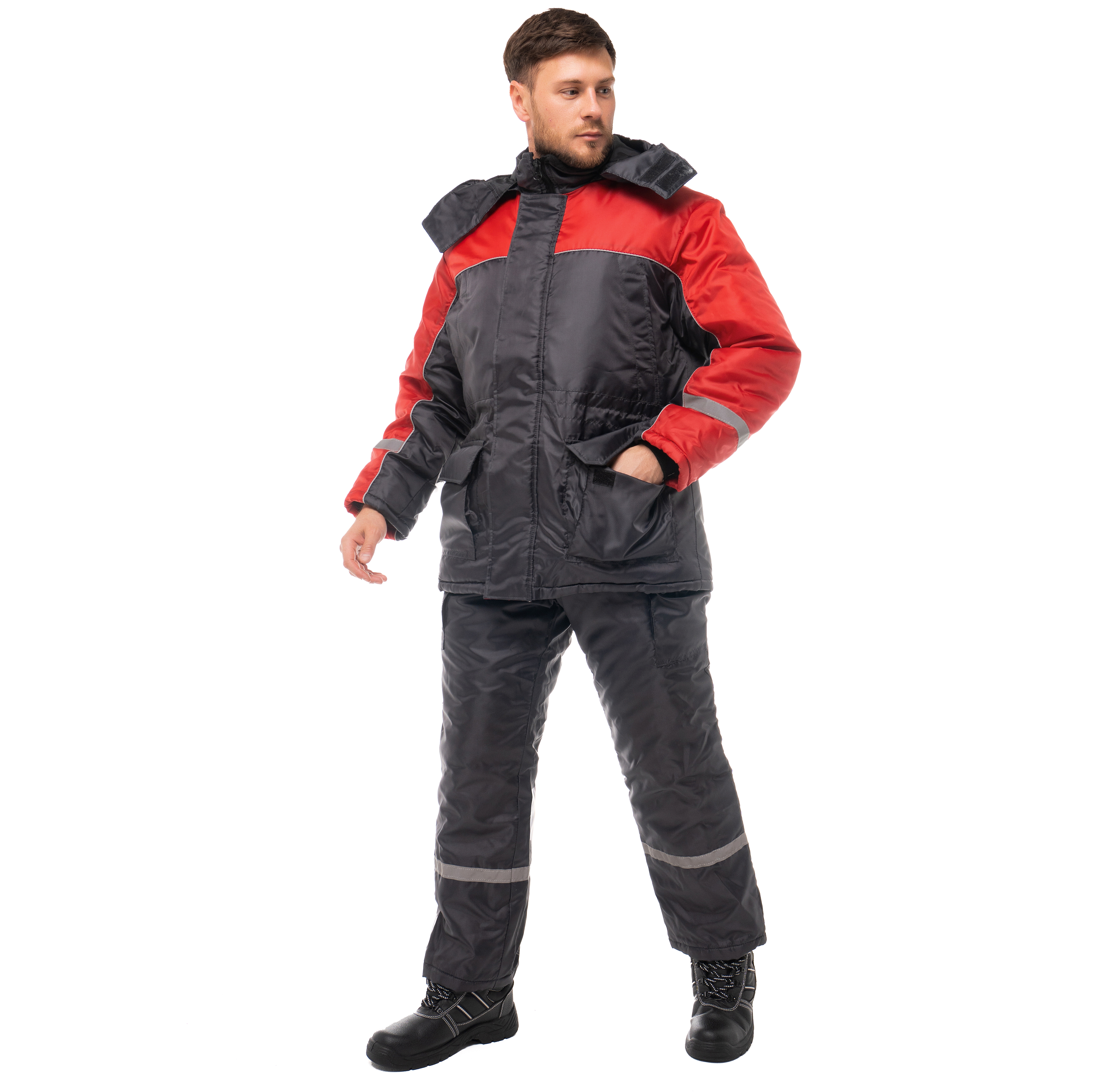 Костюм утепленный "БАЛТИКА" изготовлен в соответствии с ГОСТ и включает в себя 2 предмета: куртка / полукомбинезон. Куртка удлиненная с ветрозащитной планкой на ленте-контакт. В верхних карманах наклонный вход, а нижние объемные карманы оснащены клапанами на ленте-контакт для удобного хранения вещей. Воротник-стойка имеет флисовую подкладку для дополнительного тепла. Капюшон утепленный, съемный.