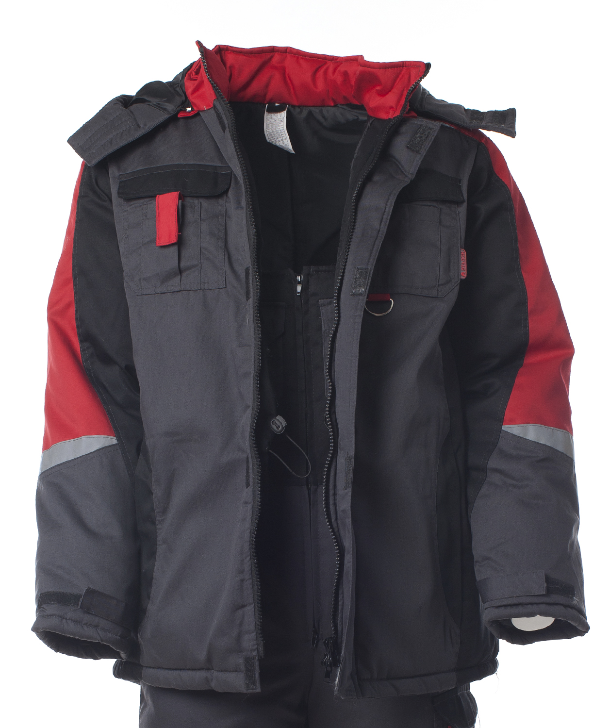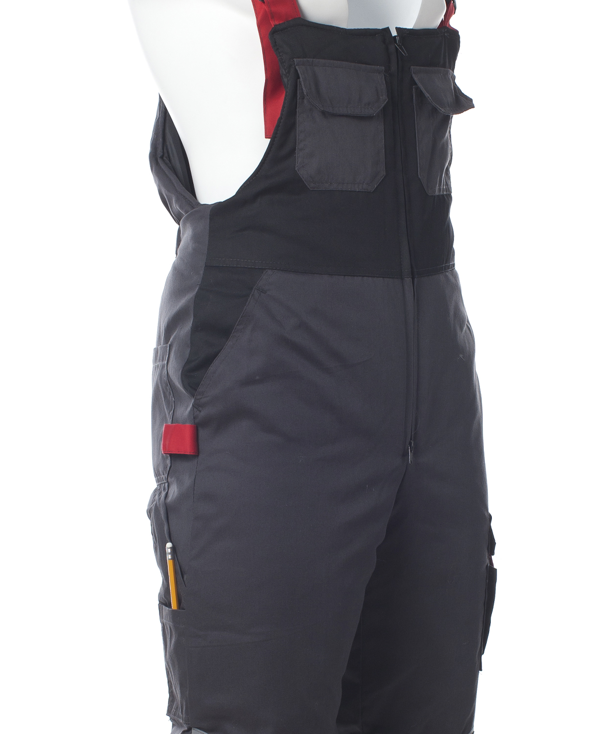 в куртке 450 гр./м2 (3 слоя корпус, 2 рукава), в полукомбинезоне 300 гр./м2 (2 слоя).