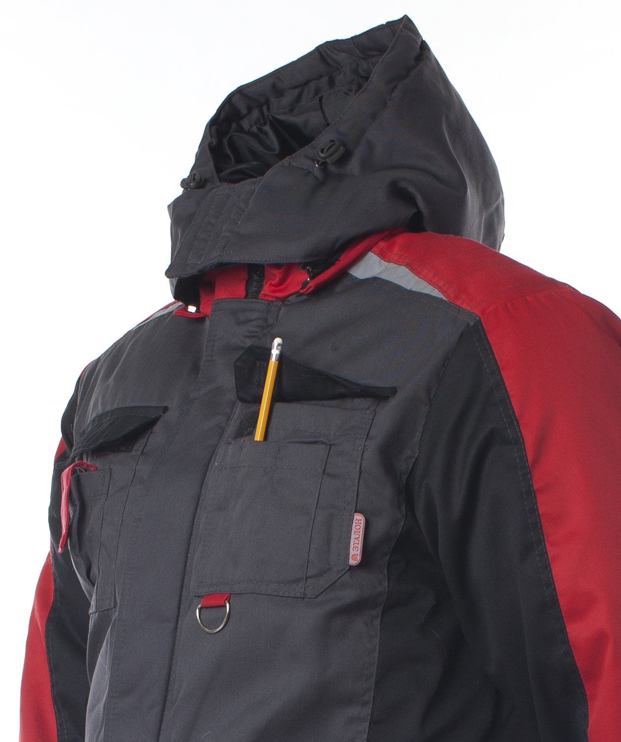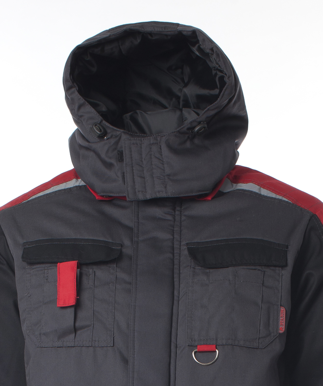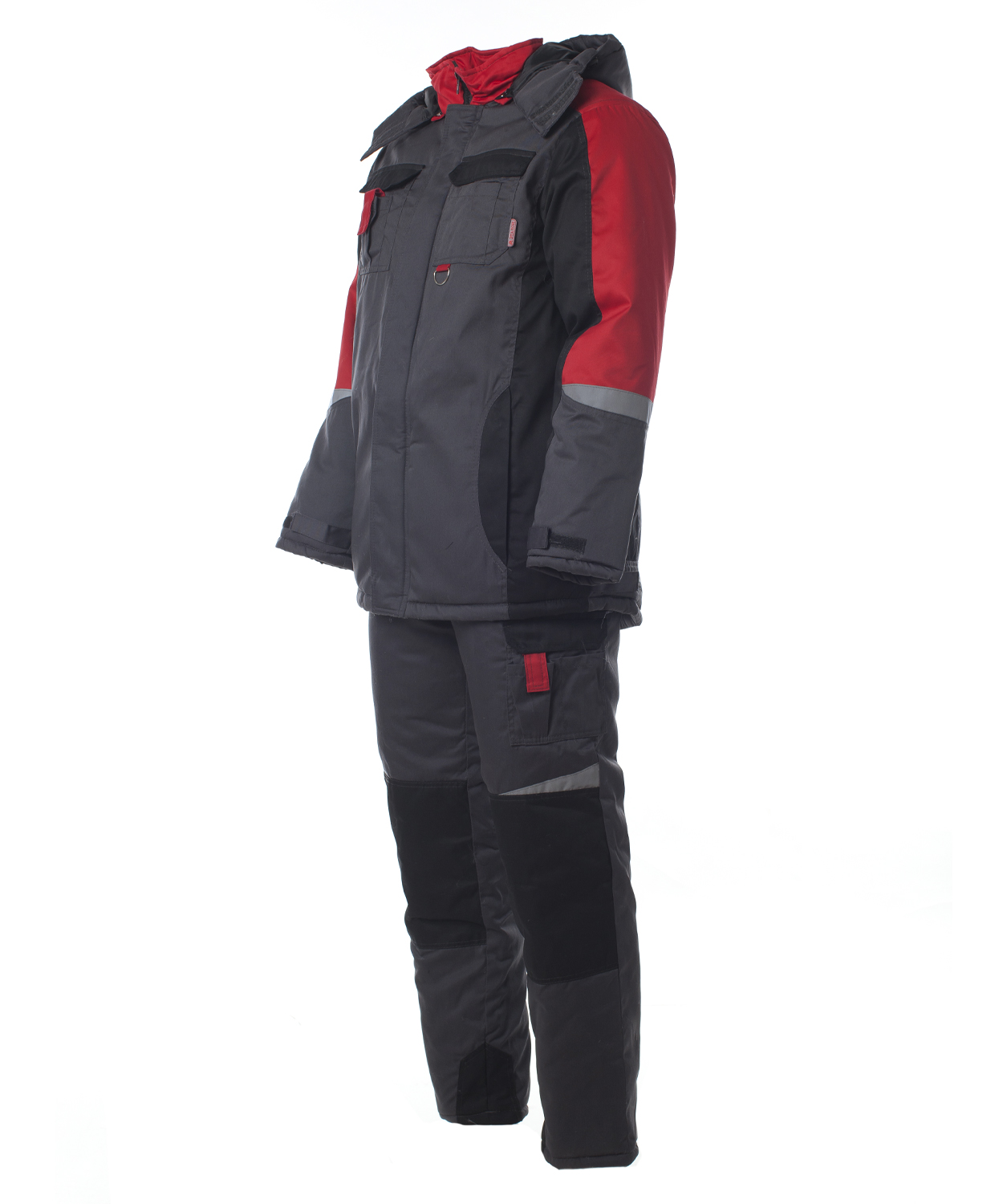 Костюм "ФОРМУЛА" изготовлен в соответствии с ГОСТ и включает в себя два предмета: куртка / полукомбинезон. Изделие закрывается на ветрозащитную планку с застежкой на ленту-контакт. Капюшон на куртке утепленный и съемный. Воротник-стойка имеет флисовую подкладку для дополнительного тепла. Ширина куртки регулируется по талии, линия низ а изделия фигурная. Центральная застежка утепленного полукомбинезона – молния. Эластичная резинка по талии спинки позволяет фиксировать посадку. В области колен по низу шаговых швов находятся усилительные накладки. В полукомбинезоне расположены различные многофункциональные карманы для хранения мелочей. Для безопасной работы сотрудника в местах с плохим освещением на костюме «ФОРМУЛА» предусмотрены декоративные элементы из светоотражающей ленты.