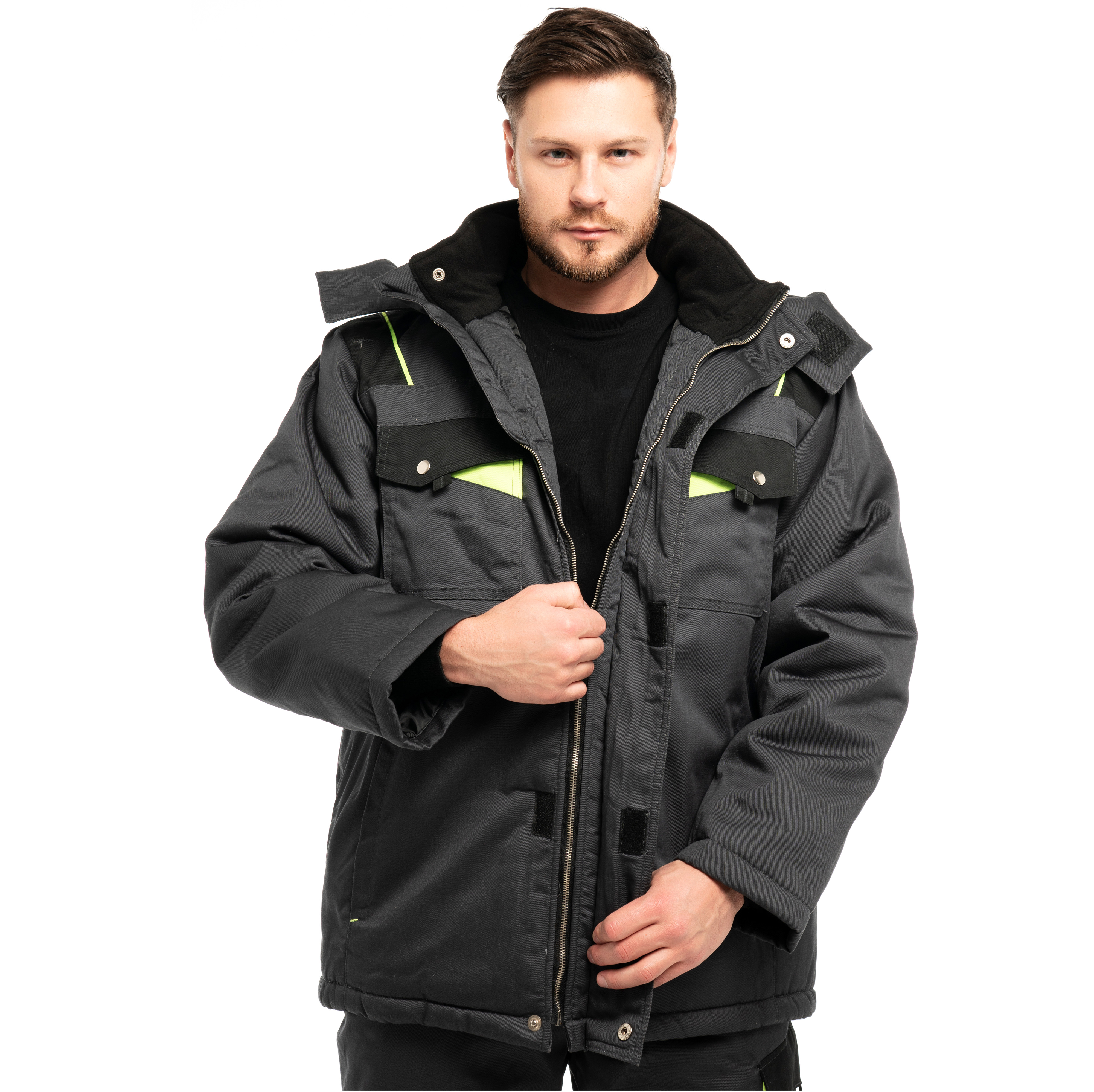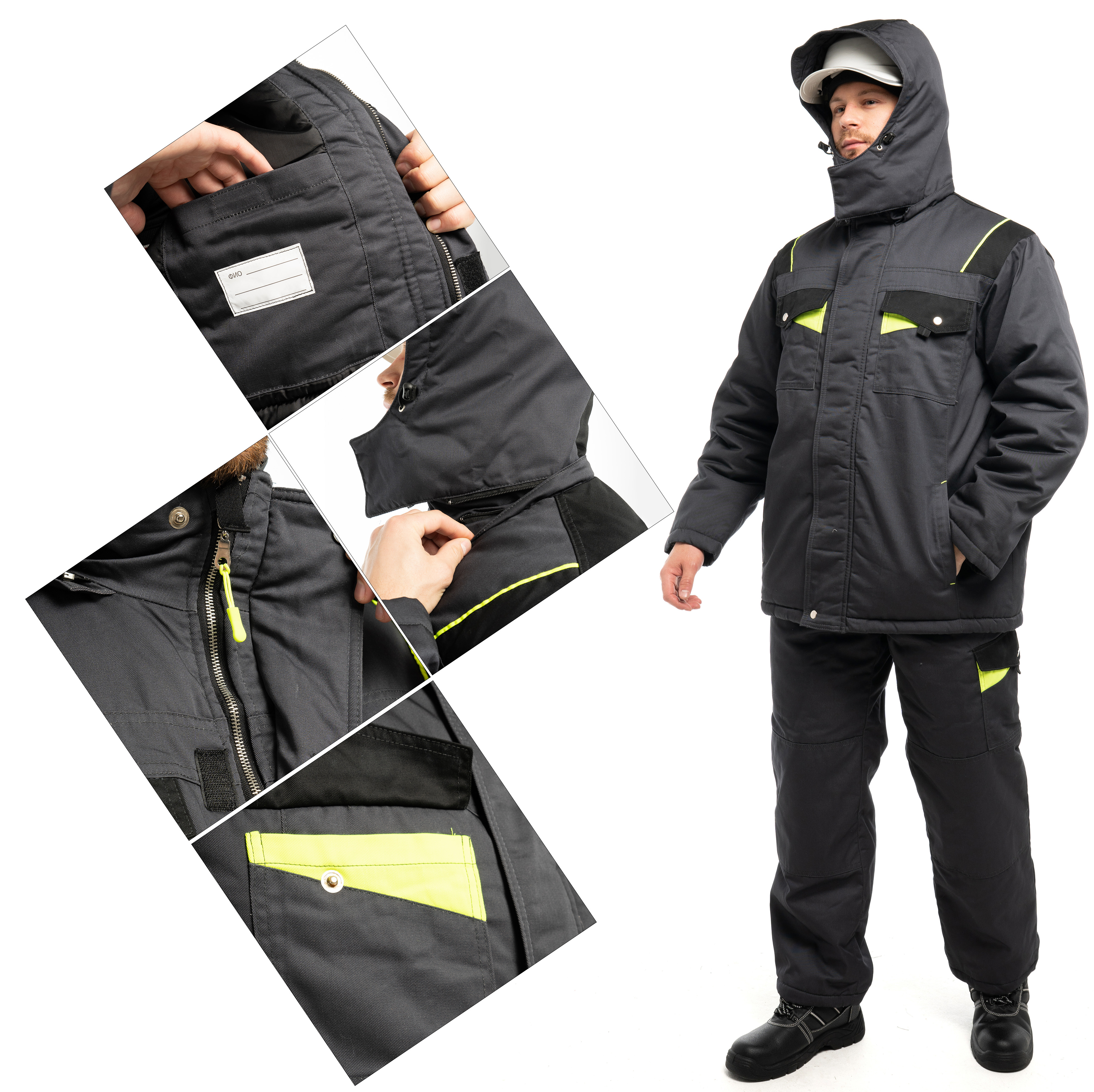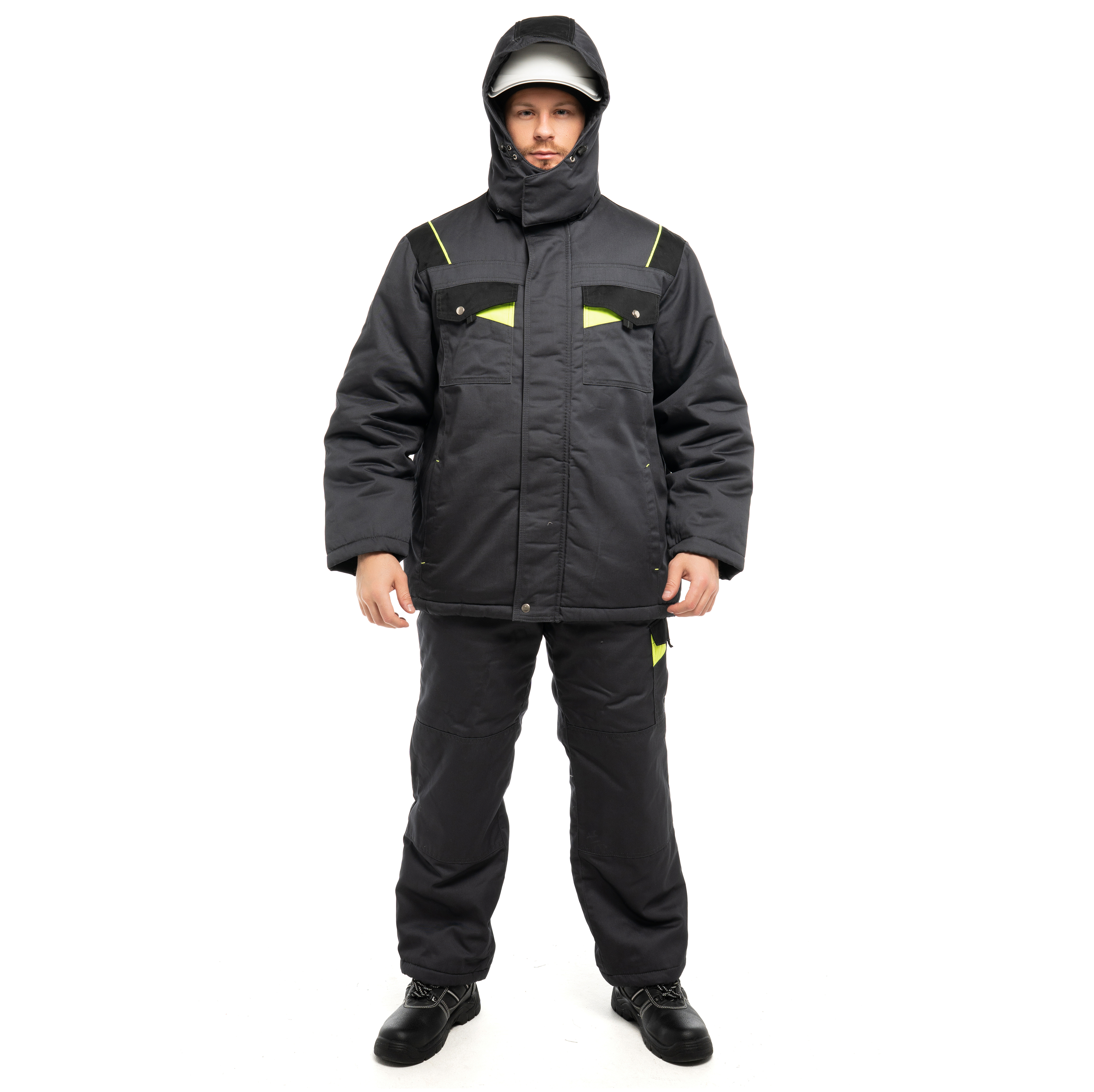 Костюм утепленный "КОРВЕТ" изготовлен в соответствии с ГОСТ и включает в себя 2 предмета: куртка / брюки. Центральная застёжка - молния "металл №5". Костюм закрывается на металлическую молнию с ветрозащитной планкой на липучках и кнопках, которая обеспечивает дополнительную защиту от ветра. На куртке расположены нагрудные накладные карманы с фигурными клапанами на кнопках, нижние карманы в рельефных швах полочек и внутренний накладной карман на подкладке. Внутренняя ветрозащитная планка закрывает контакт металлической молнии с лицом. Костюм оснащен съемным капюшоном, который можно регулировать по объему лицевой и затылочной части и использовать с каской. Трикотажные манжеты по низу рукавов регулируют посадку. На брюках съёмные бретели, пояс закрывается на пуговицы со шлевками. Брюки с застежкой гульфика на молнию и съёмными бретелями. На брюках расположены многофункциональные карманы для хранения мелочей. В области колен усилительные накладки.
