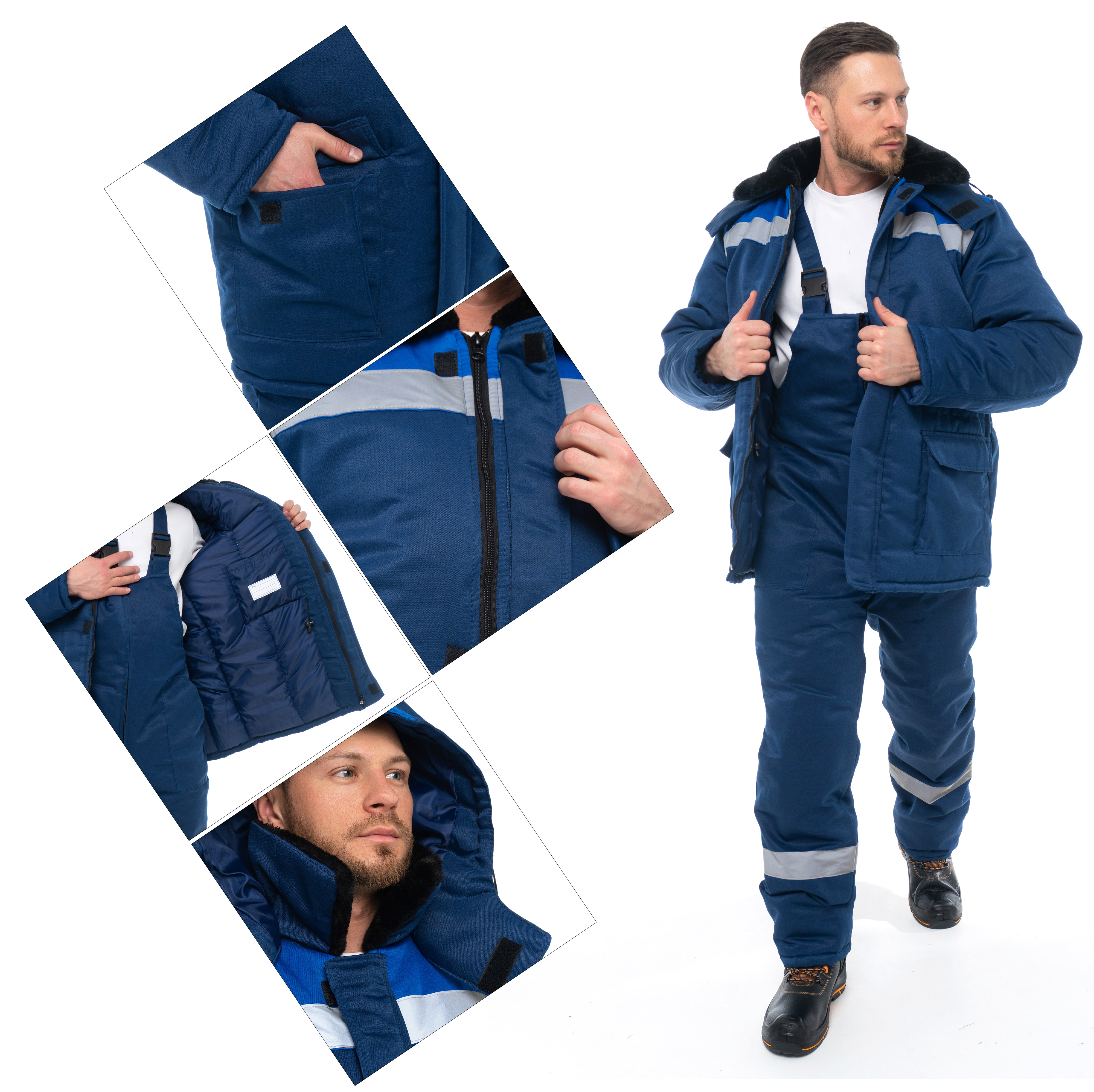 Костюм утепленный "СТАНДАРТ ГРЕТА" изготовлен в соответствии с ГОСТ и включает в себя 2 предмета: куртка / полукомбинезон. Удлиненная куртка прямого силуэта с ветрозащитной планкой с застежкой на ленту-контакт. На куртке расположены накладные карманы с клапанами с застежкой на ленту-контакт. Ширина изделия регулируется по талии куртки. Изделие оснащено утепленным съемным капюшоном и меховым воротником. Центральная застежка утепленного полукомбинезона - молния. Полукомбинезон фиксируется бретелями с эластичной резинкой, на нем расположены накладные карманы с наклонным входом. Для безопасной работы сотрудника в местах с плохим освещением на костюме «СТАНДАРТ Грета» предусмотрена световозвращающая полоса шириной 50 мм.