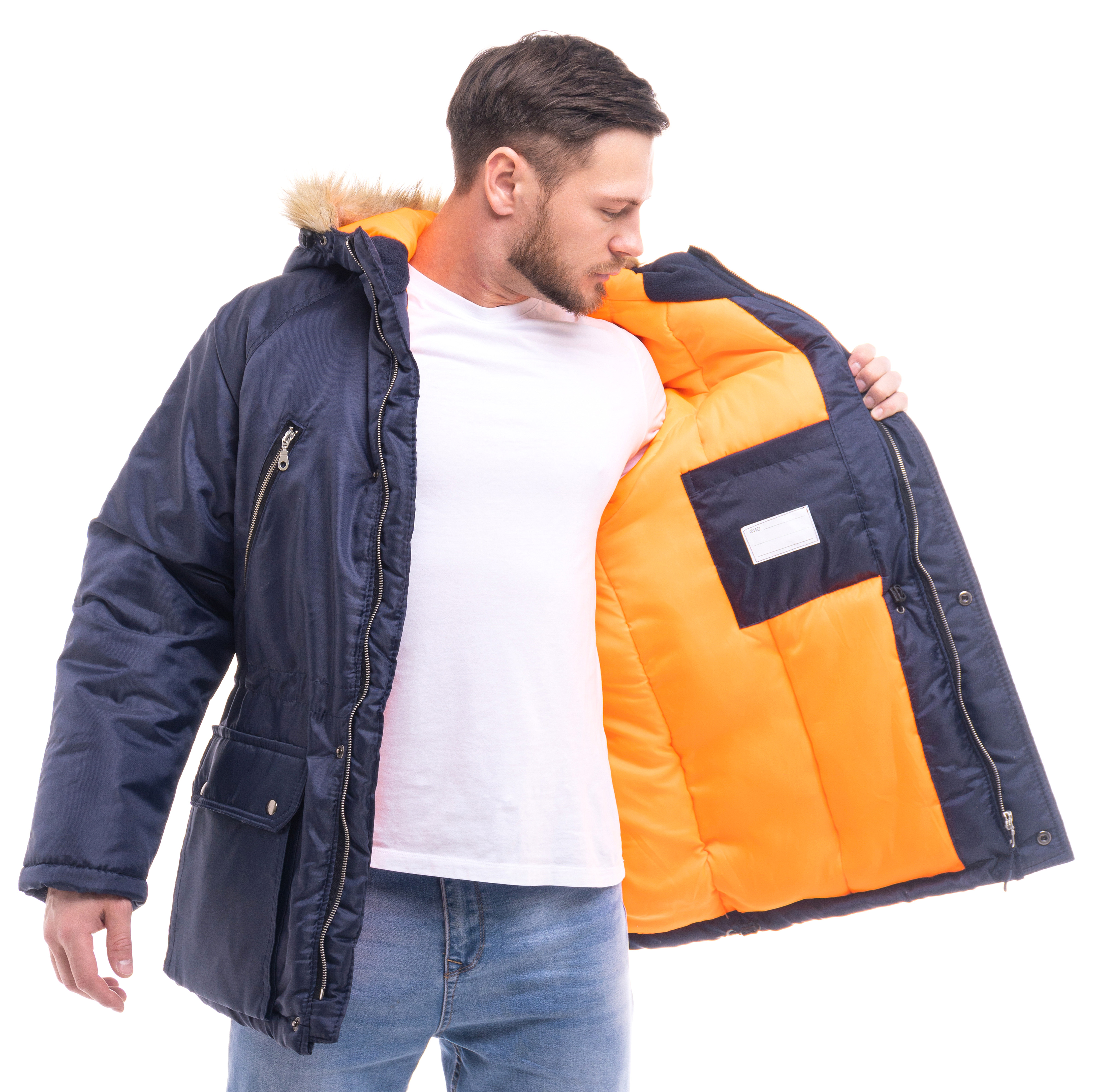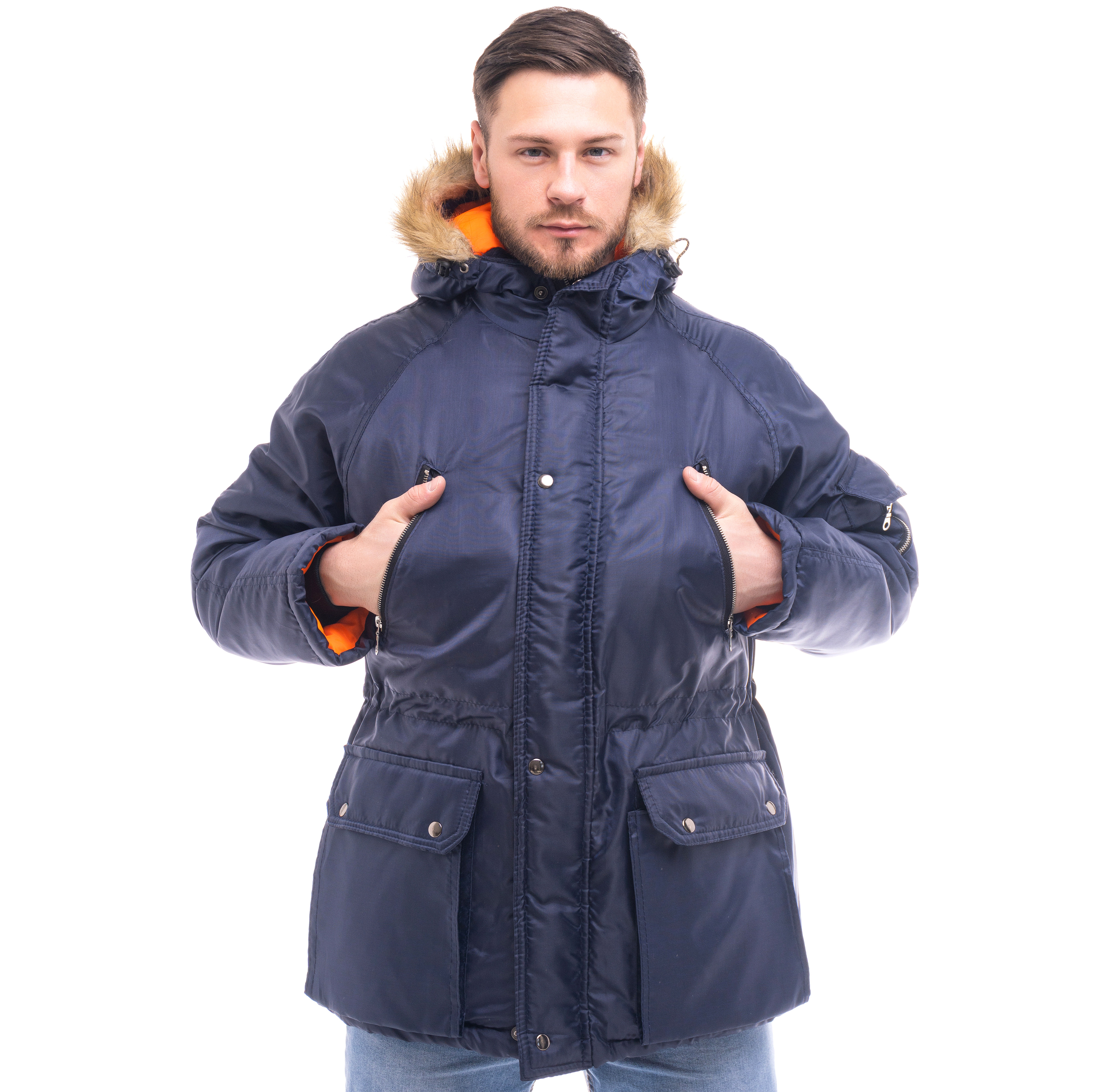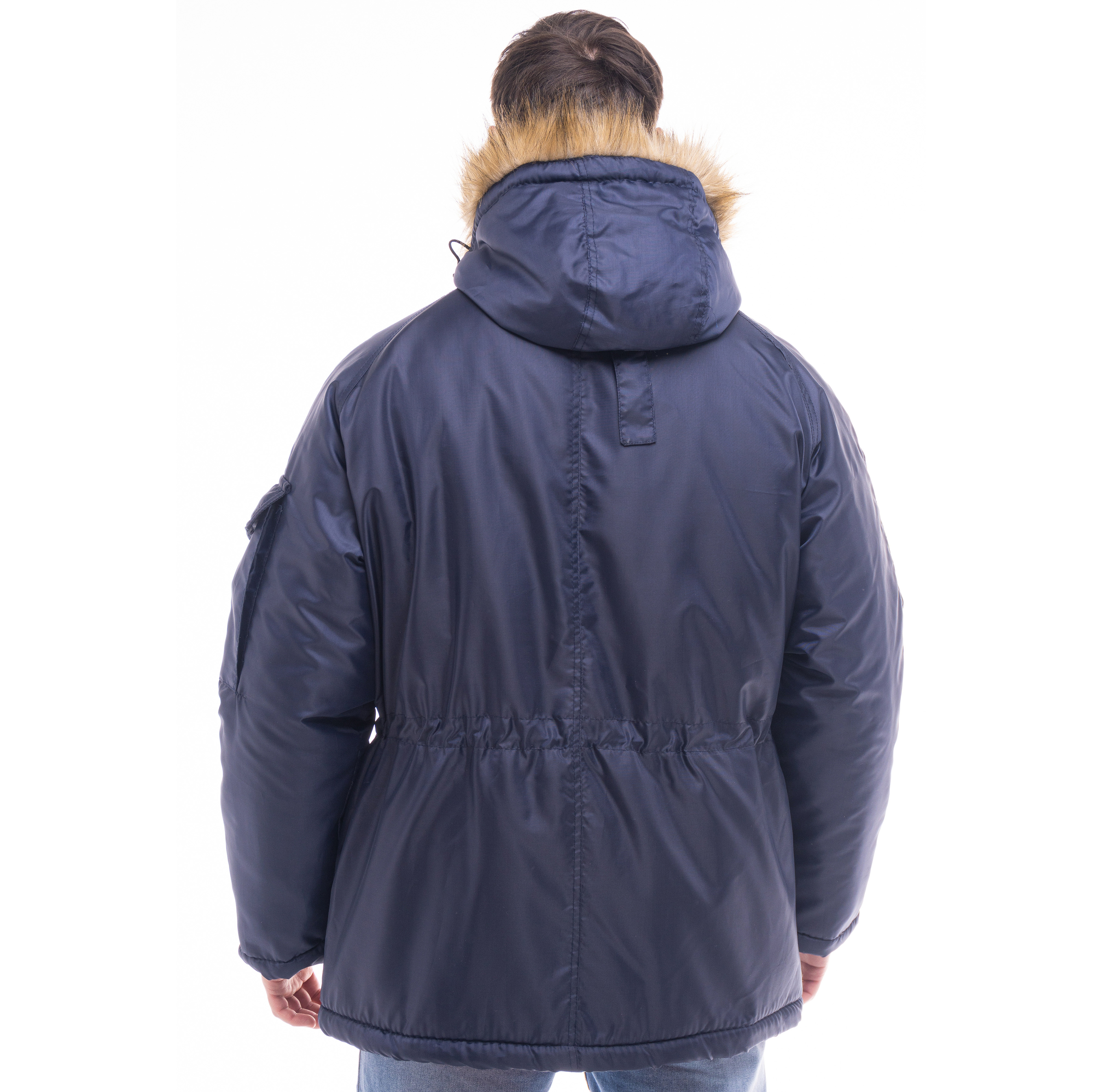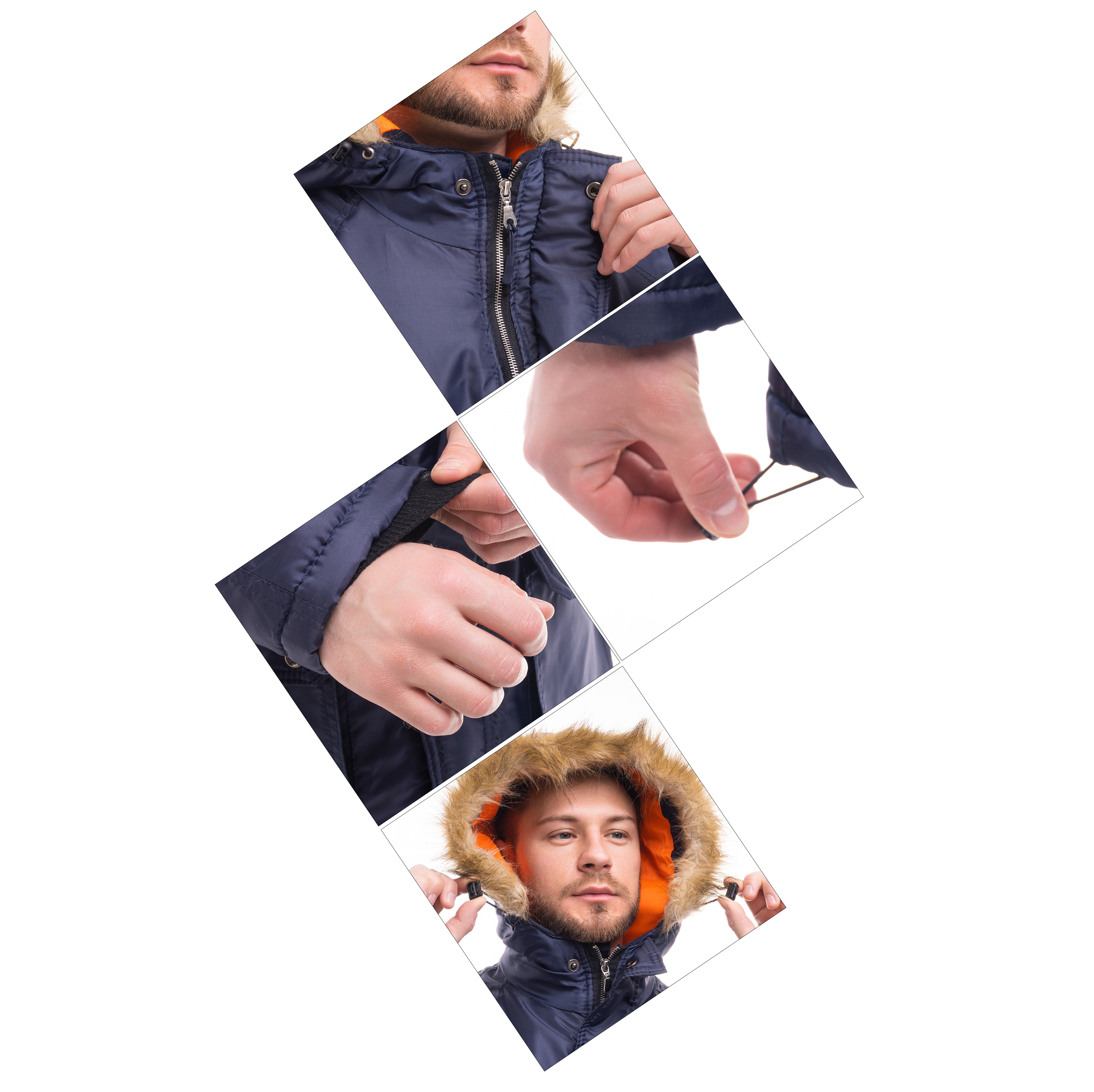 Куртка "Аляска" представляет собой удлиненную модель. Она оснащена ветрозащитной планкой на кнопках, которая обеспечивает дополнительную защиту от ветра.