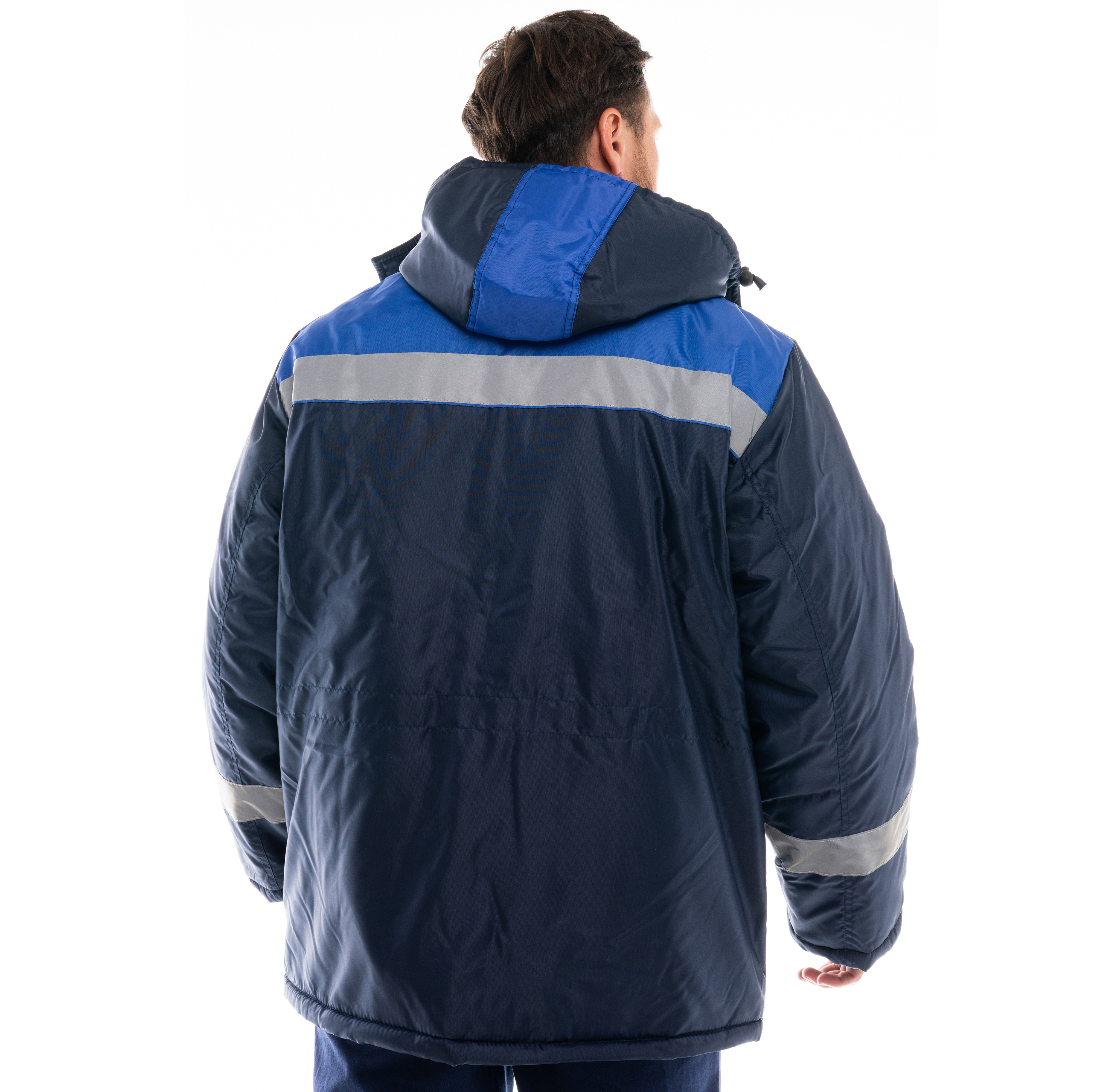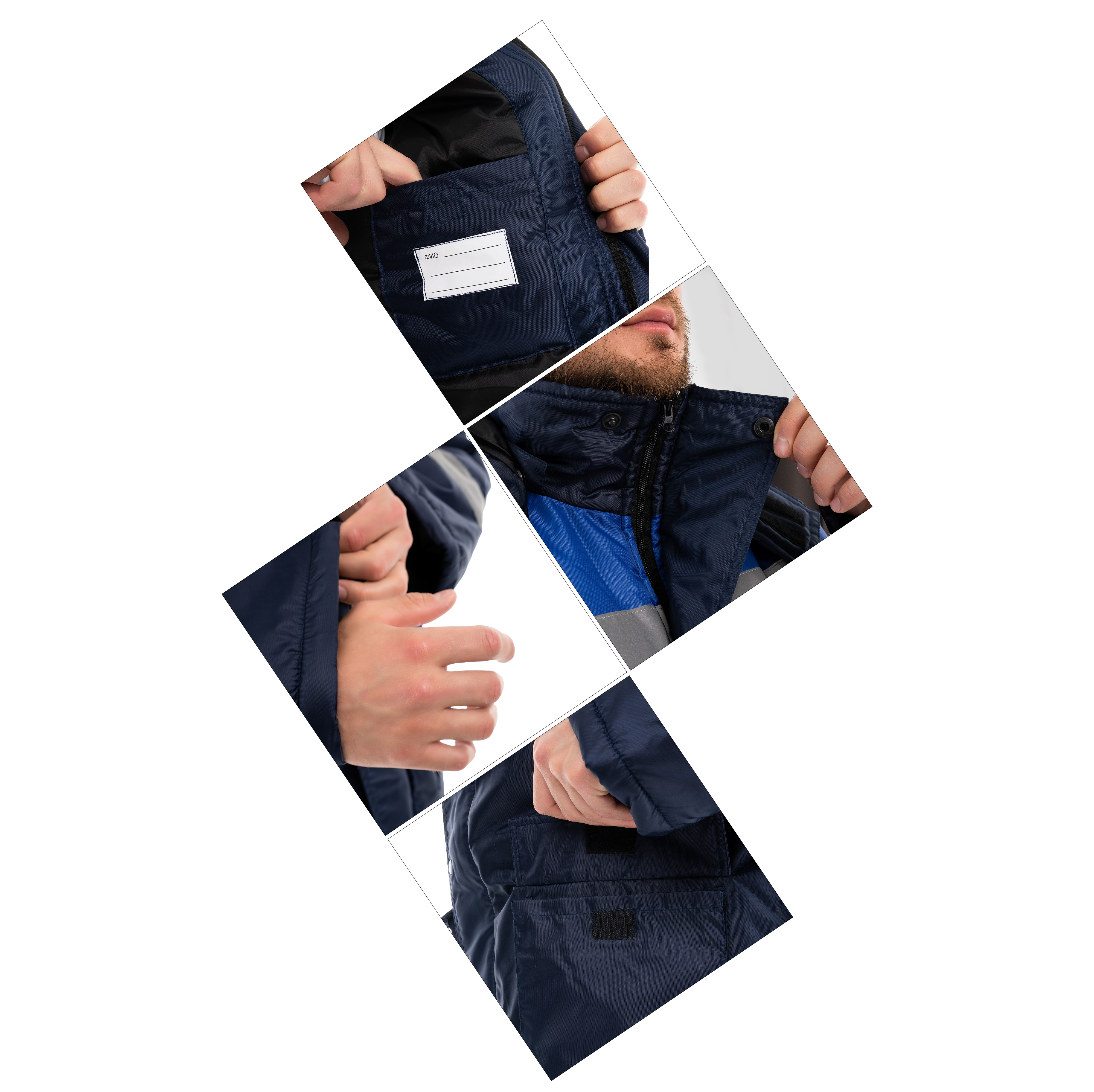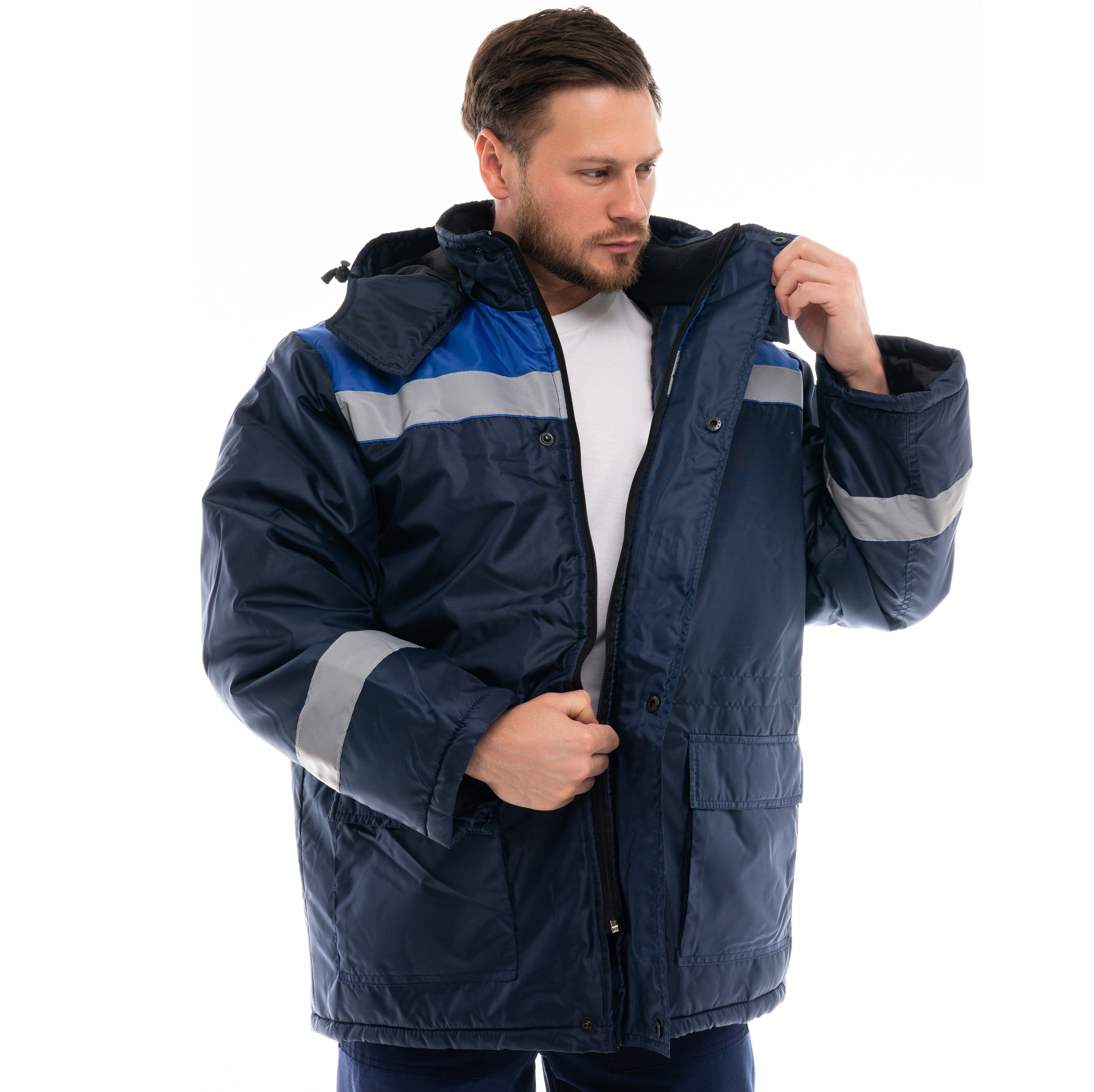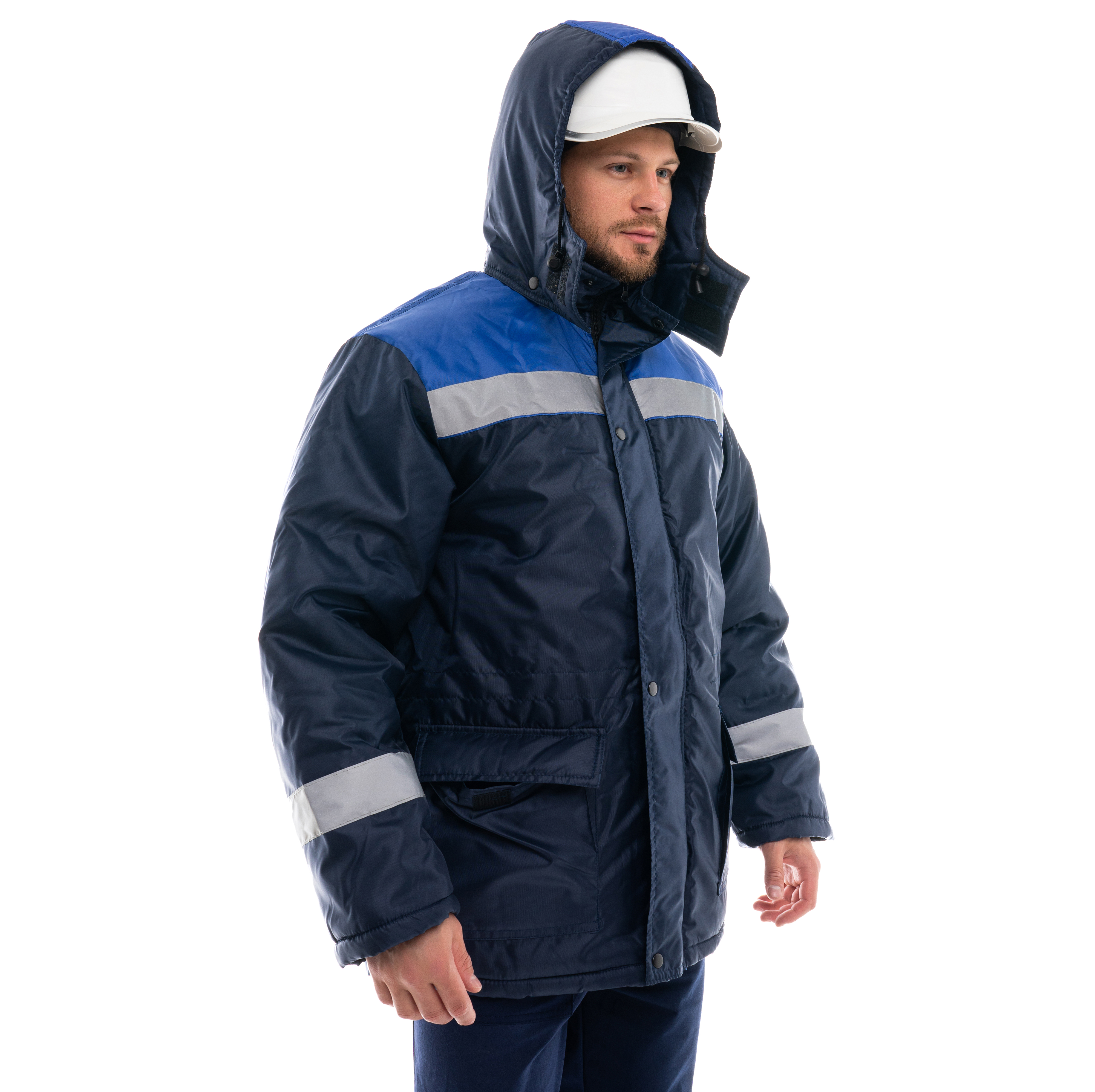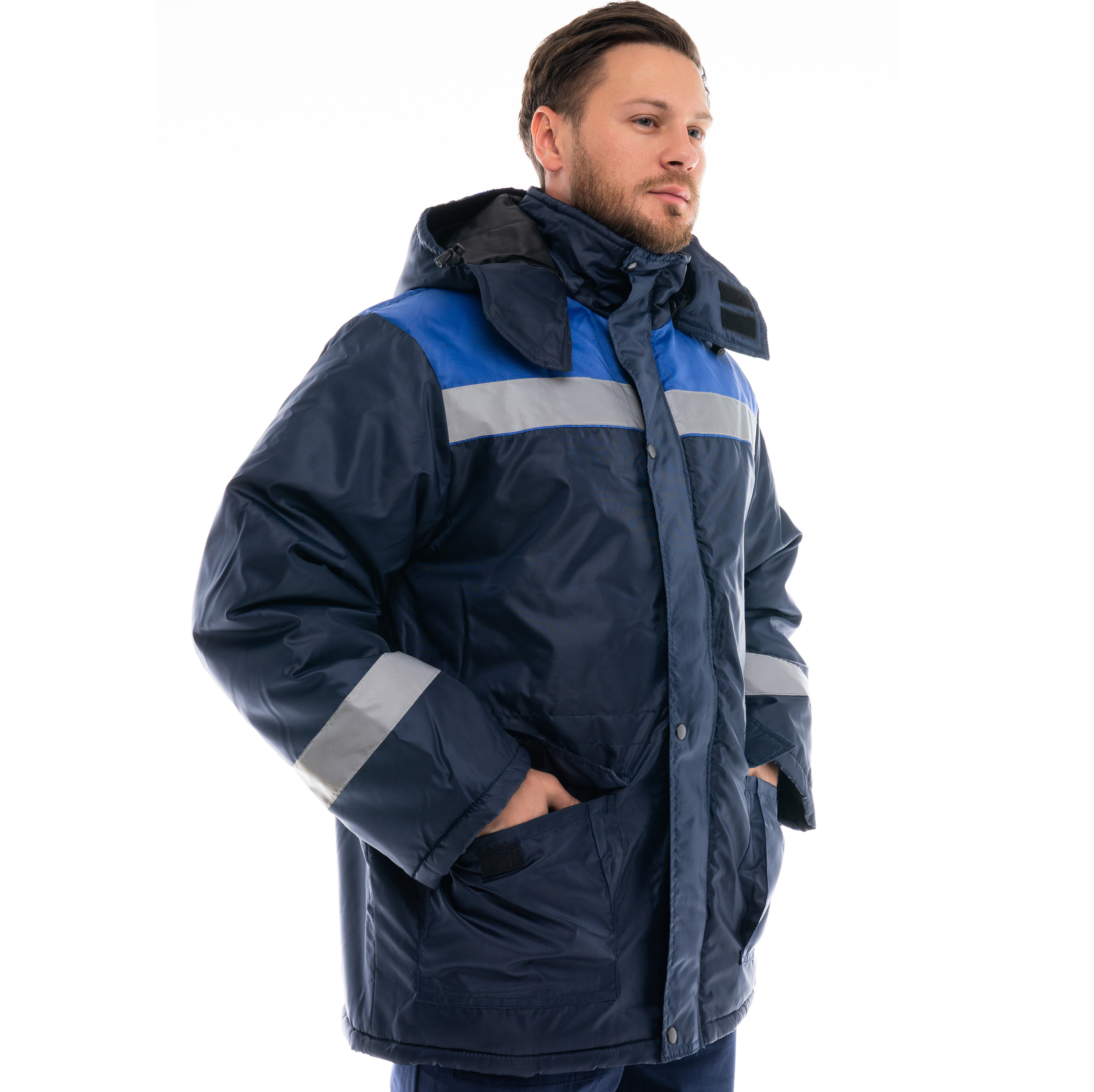 Куртка «СТАНДАРТ» с СОП изготовлена в соответствии с ГОСТ. Центральная застежка изделия – спиральная молния с ветрозащитной планкой с застежкой на ленту-контакт. В куртке расположены объемные карманы с клапаном. Прилегание изделия регулируется по талии. Куртка оснащена утепленным съемным капюшоном с воротником-стойкой на флисовой подкладке. Для безопасной работы сотрудника в местах с плохим освещением на куртке «СТАНДАРТ» предусмотрена световозвращающая лента шириной 50 мм.
