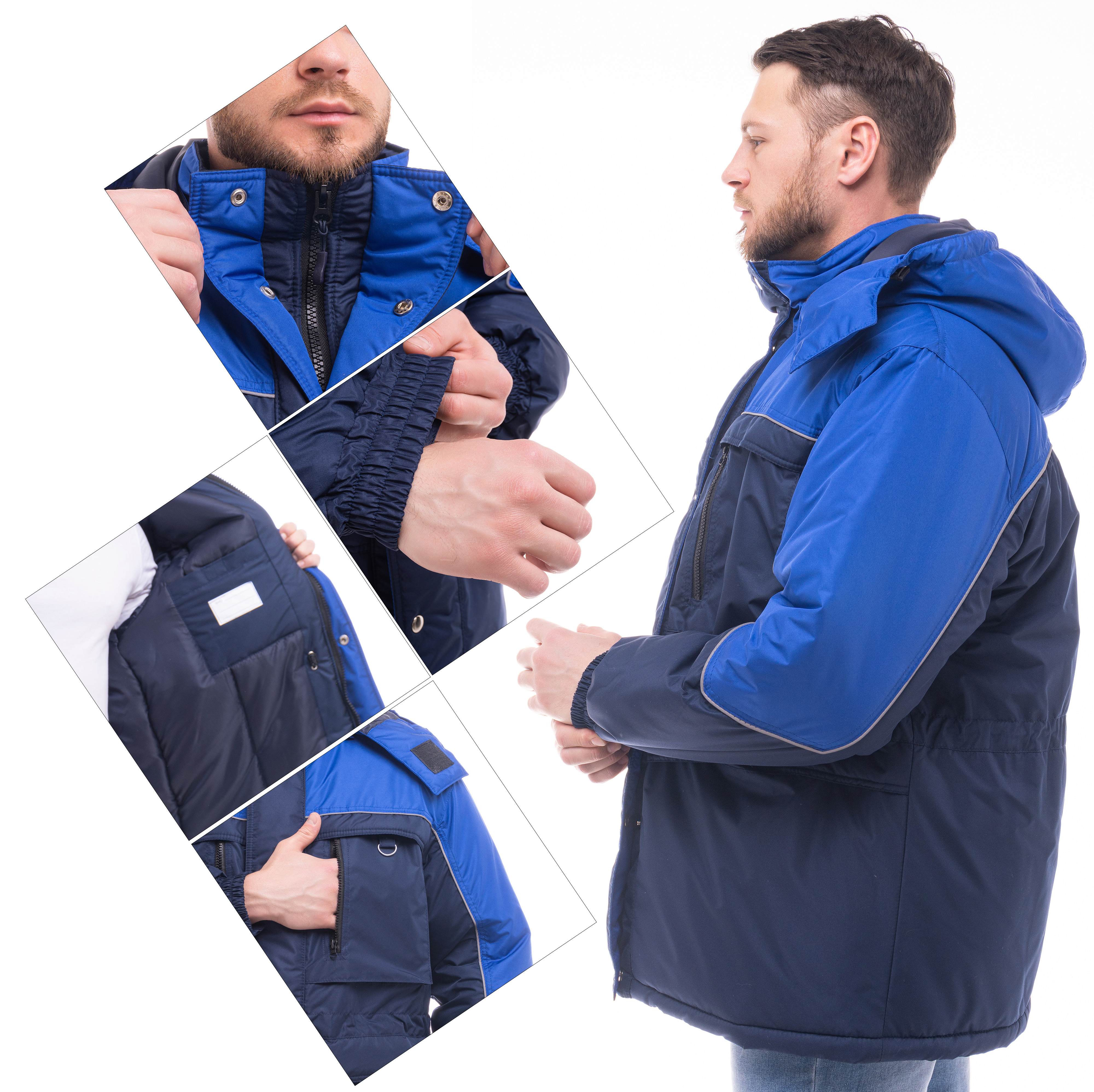 Куртка "ВЕГА" изготовлена в соответствии с ГОСТ. Она оборудована двумя ветрозащитными планками, застегивающимися на кнопки. На изделии расположены разнообразные многофункциональные карманы для удобного хранения предметов. Съемный капюшон закреплен на молнии, есть возможность отрегулировать его объем. Для безопасной работы сотрудника в местах с плохим освещением на куртке "ВЕГА" предусмотрен светоотражающий кант. Ширина изделия регулируется по талии.