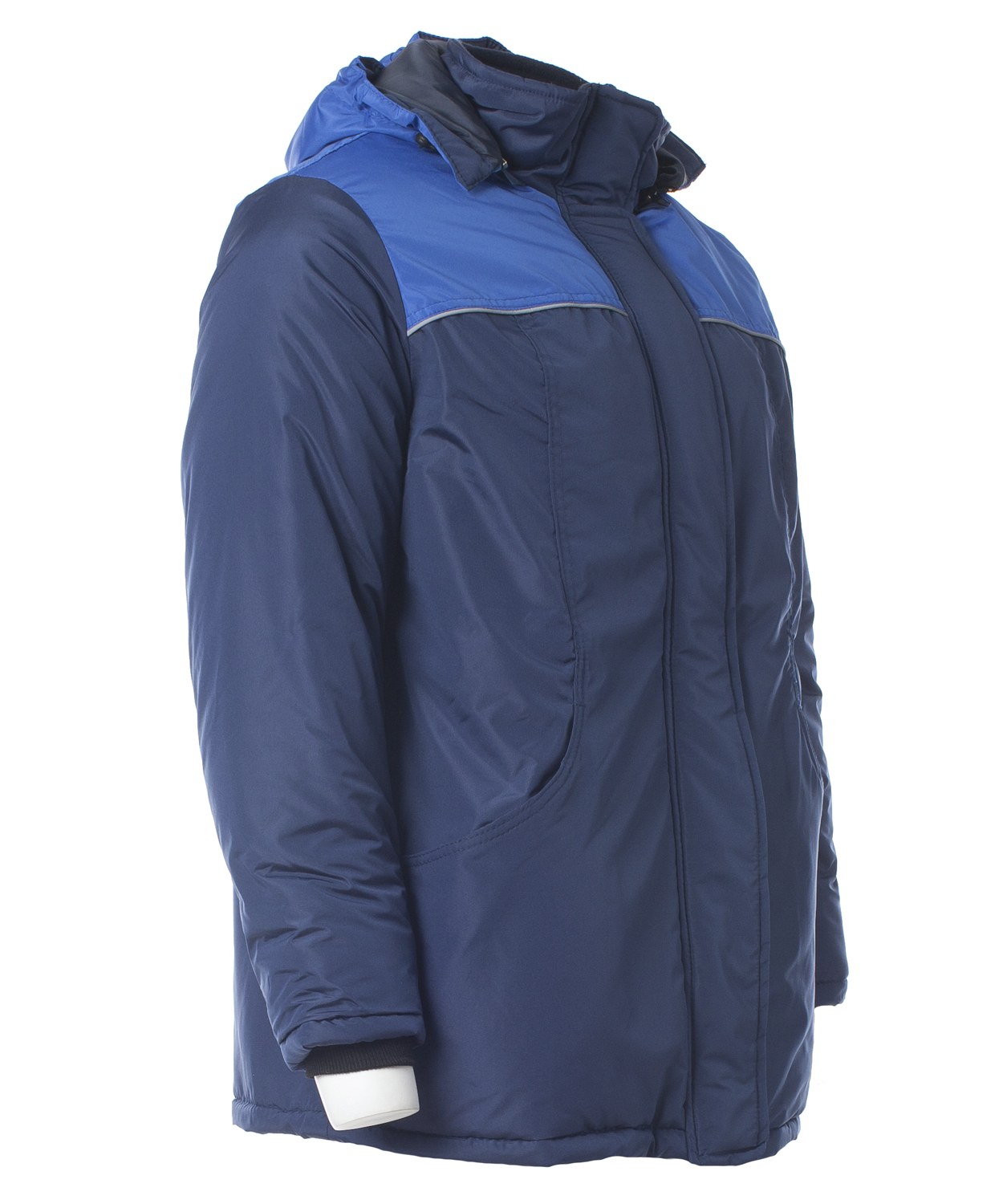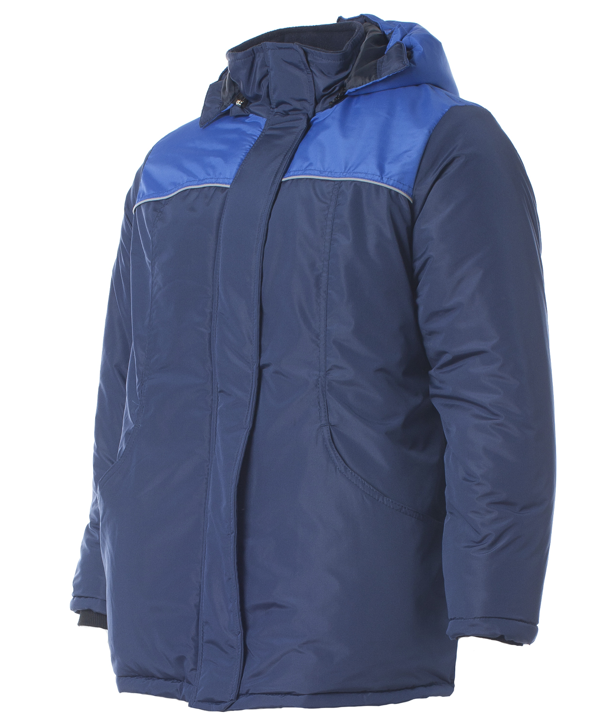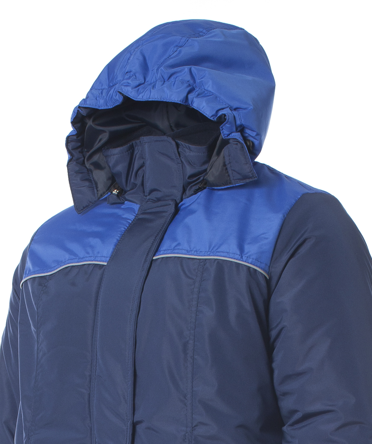 Куртка "СНЕЖАНА" изготовлена в соответствии с ГОСТ. Модель закрывается ветрозащитной планкой на ленту-контакт. Куртка оснащена съемным капюшоном на молнии с регулировкой объема и воротником-стойкой на флисовой подкладке. На изделии расположены удобные карманы в рельефных швах. Для безопасной работы сотрудника в местах с плохим освещением на куртке «СНЕЖАНА» предусмотрен световозвращающий кант.