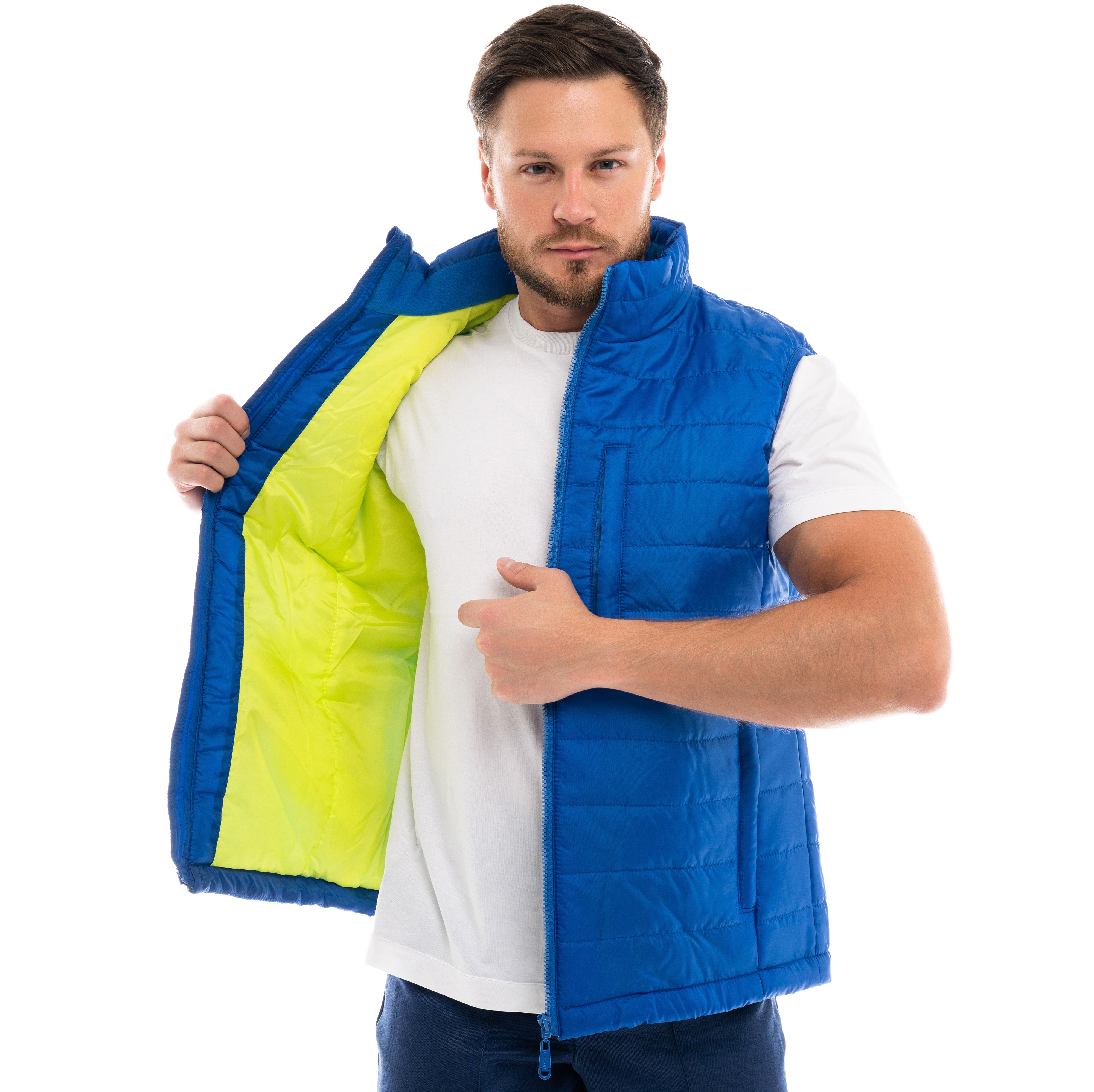Жилет «КАНАДА» выполнен в классическом фасоне из высококачественных материалов. Утепленный стеганный жилет подходит как мужчинам, так и женщинам. Центральная застежка - на молнии с внутренней планкой. Карманы изготовлены в листочку на молнию. На модели внутренний накладной карман и воротник-стойка на флисовой подкладке.